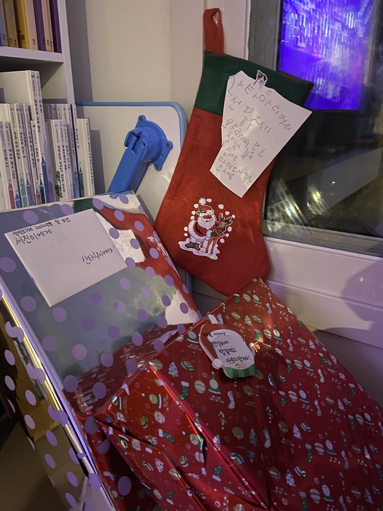 그런 할머니가 그때와 다른 모습으로 현관문을 열고 들어와선,우리집 가장 작은 방에서 힘없이 누워만 계셨다. 물도 제대로 못드시고,엄마의 도움없이는 용변도 보지 못하셨다. 어린 마음에도 그 모습은 심장을 콕콕 찔린 것 처럼 아팠다. 크리스마스 전날, 나는 두손을 그러모아 간절히 기도했다."할머니의 병이 씻은듯이 나아 예전으로 돌아오는 기적이 일어나게 해주세요"