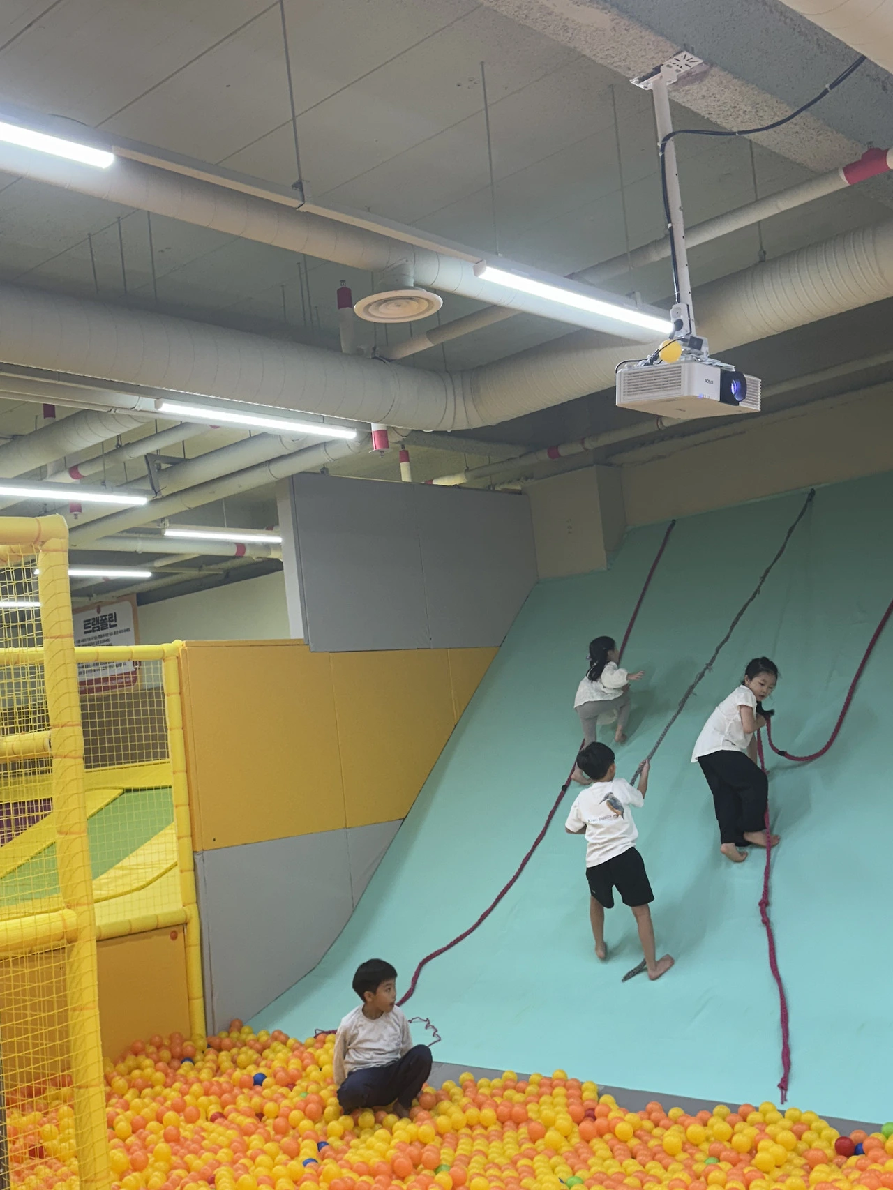 입을 오므려가며 진지하게 임하는 아이들의 모습에 잠시 할말을 잃고 한동안 그 모습을 넋놓고 바라보다 일행이 있는 아래층으로 천천히 내려왔다. 십분여쯤 지났을까? 직원이 아이들에게 “고마워 얘들아”라고 다정하게 말하는 소리가 키즈카페 허공을 울렸고, 아까보다 더 머리가 푹 젖은 채 네 아이들은 계단으로 일제히 내려오며 모습을 드러냈다. 하루종일 키즈카페 소음에 아이들 순시에 피로감이 엄습했던 엄마 셋은 아이들의 의기양양한 모습에 서로를 같은 표정으로 바라보며 웃을 수 밖에 없었다.
