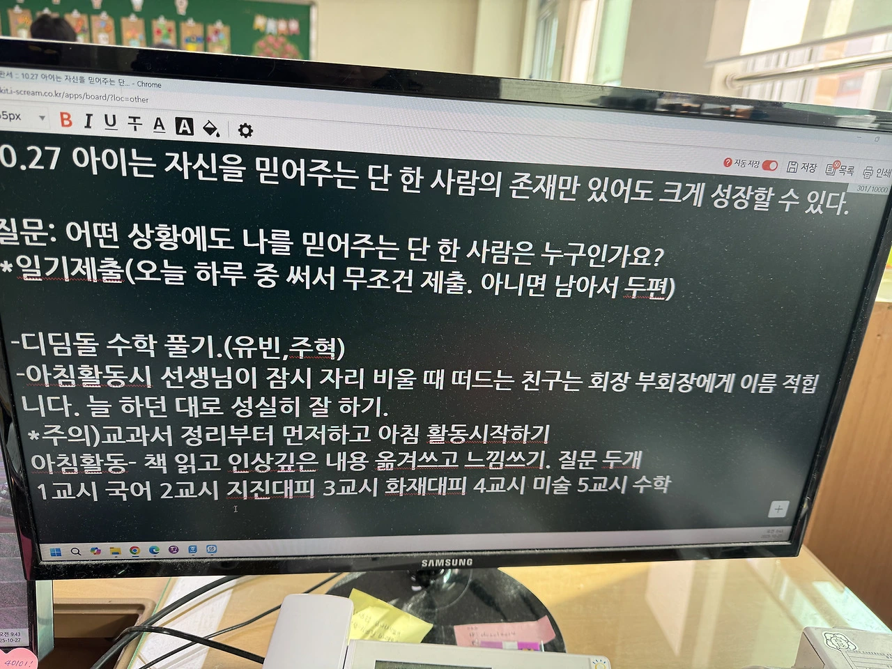 카페하나 없고 쉬는 시간도 온전히 쉬지 못하는 학교라는 척박한 공간에서 받는 가장 큰 위안이자 휴식은 바로 아이들에게서 받는 다정함이다. 순도 99.9프로의 다정함을 내 마음의 연료 탱크에 가득 채워 오늘 내가 만나는 사람들에게 그대로 전달하는 하루를 보내야겠다.