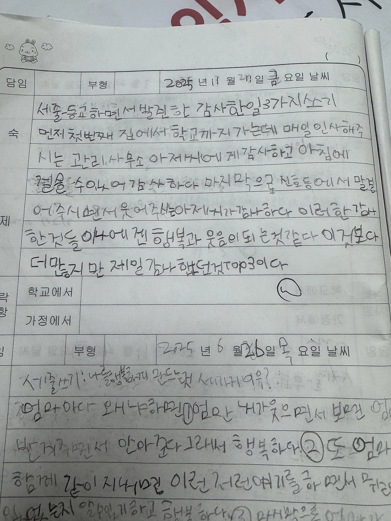 나는 그 아이의 글을 거울처럼 바라보며 어쩜 오늘 선생님이 한 감사랑 꼭 들어맞냐며 반색했다. 그 말에 몇 아이들은 서둘러 감사일기를 추가하는 모습이 눈에 띄었다. 아이의 발표로 감사의 문을 활짝 여니 다른 아이들도 질세라 자신의 감사일기를 발표하며 어느 새 교실의 온도가 후끈해지기 시작했다.