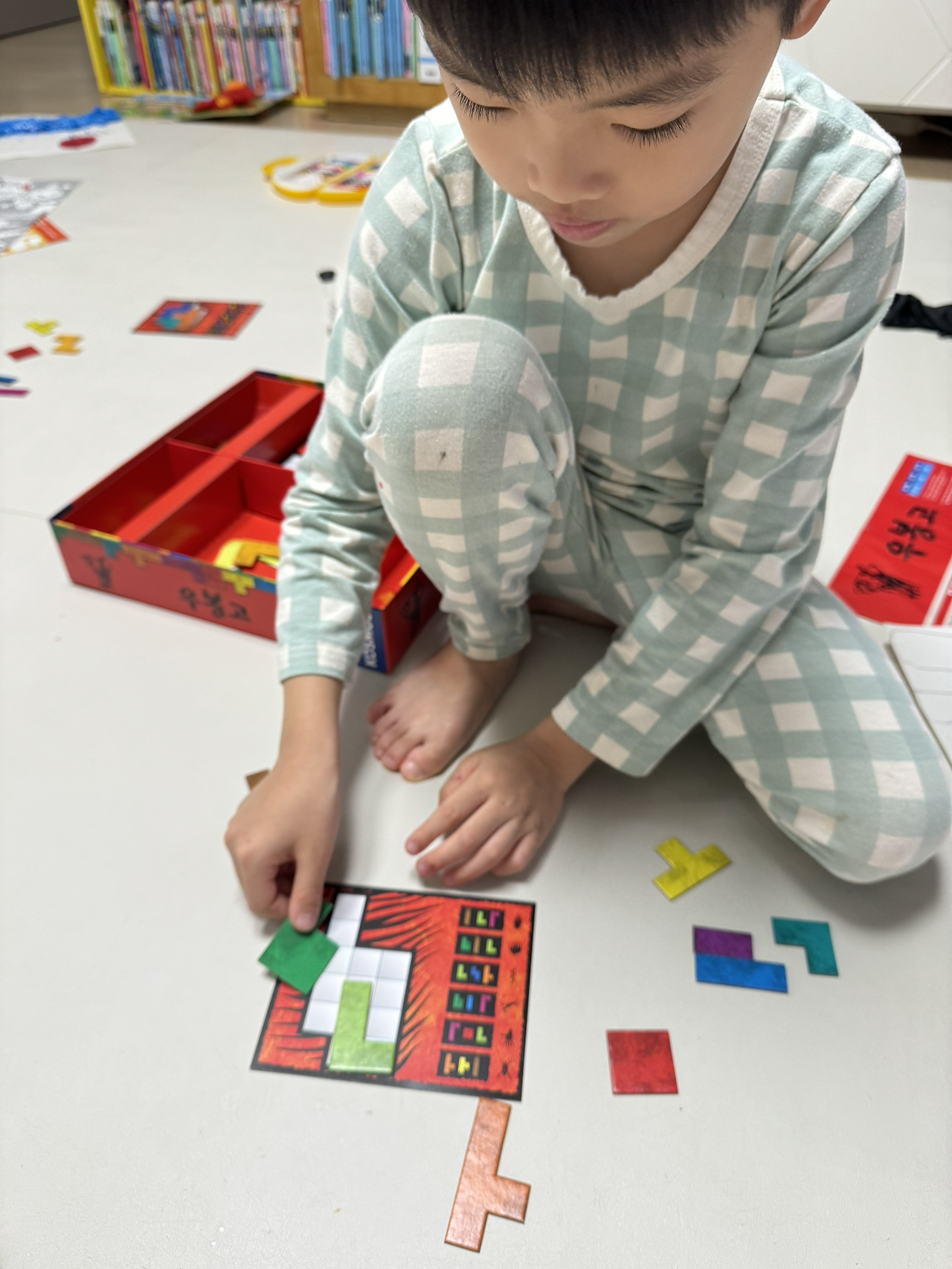 정해진 칸에 주사위를 던져 나온 퍼즐 조각을 누가 먼저 맞추는 지 겨루는 게임인데 맞추다보니 은근 재미가 있었다. 나도 모르게 게임에 빠져들었다. 학교에서 가끔 아이들이 보드게임을 하는 것을 곁눈질로만 보고 저들이 왜저리 환호하는 지 몰랐는데 그 마음을 알 것 같다. 퍼즐 조각이 남은 빈칸에 딱 들어맞는 순간이란? 설명할 수 없는 쾌감이다.
