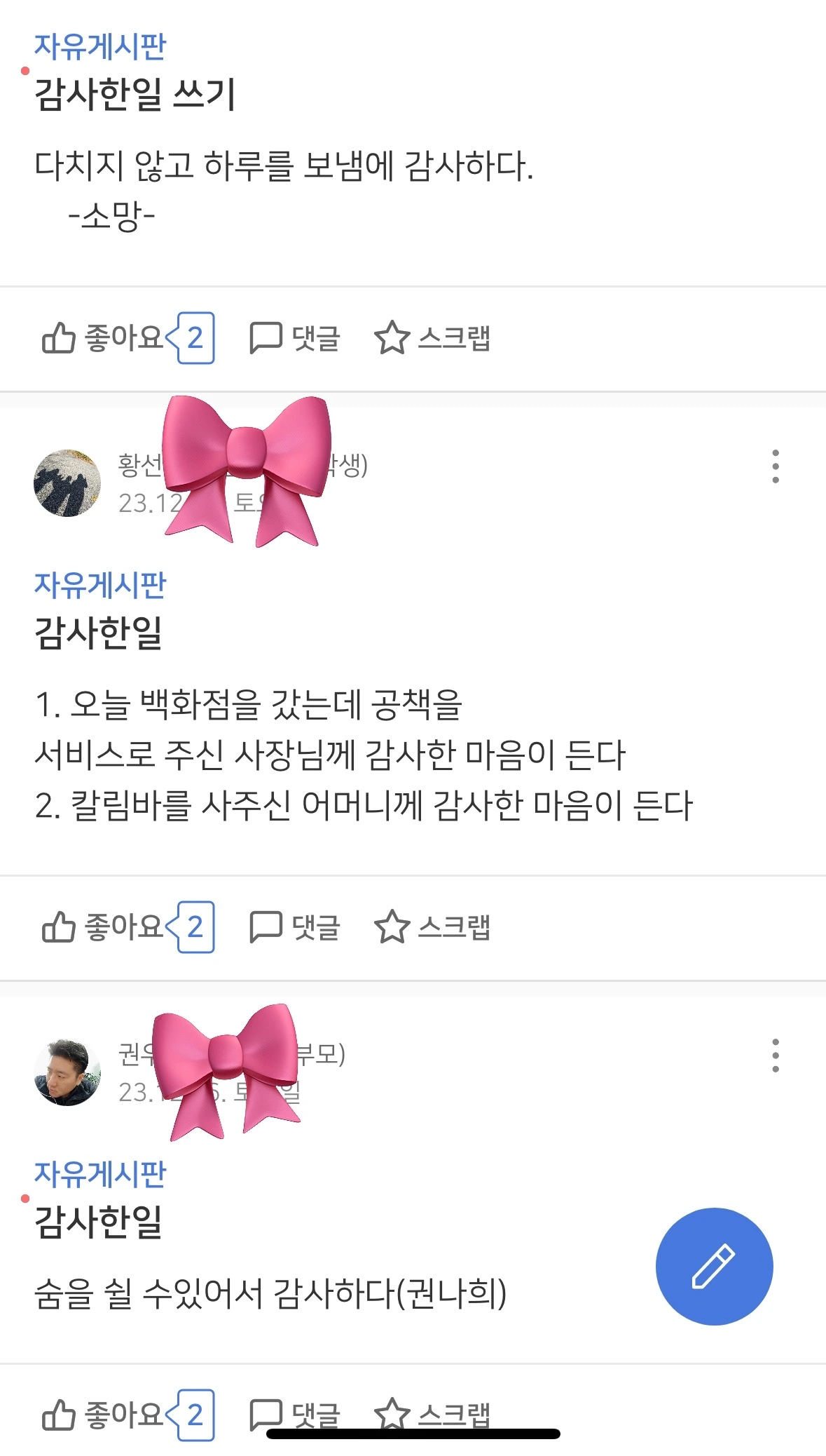 주말에도 알림장앱을 통해 이어가는 아이들의 감사일기