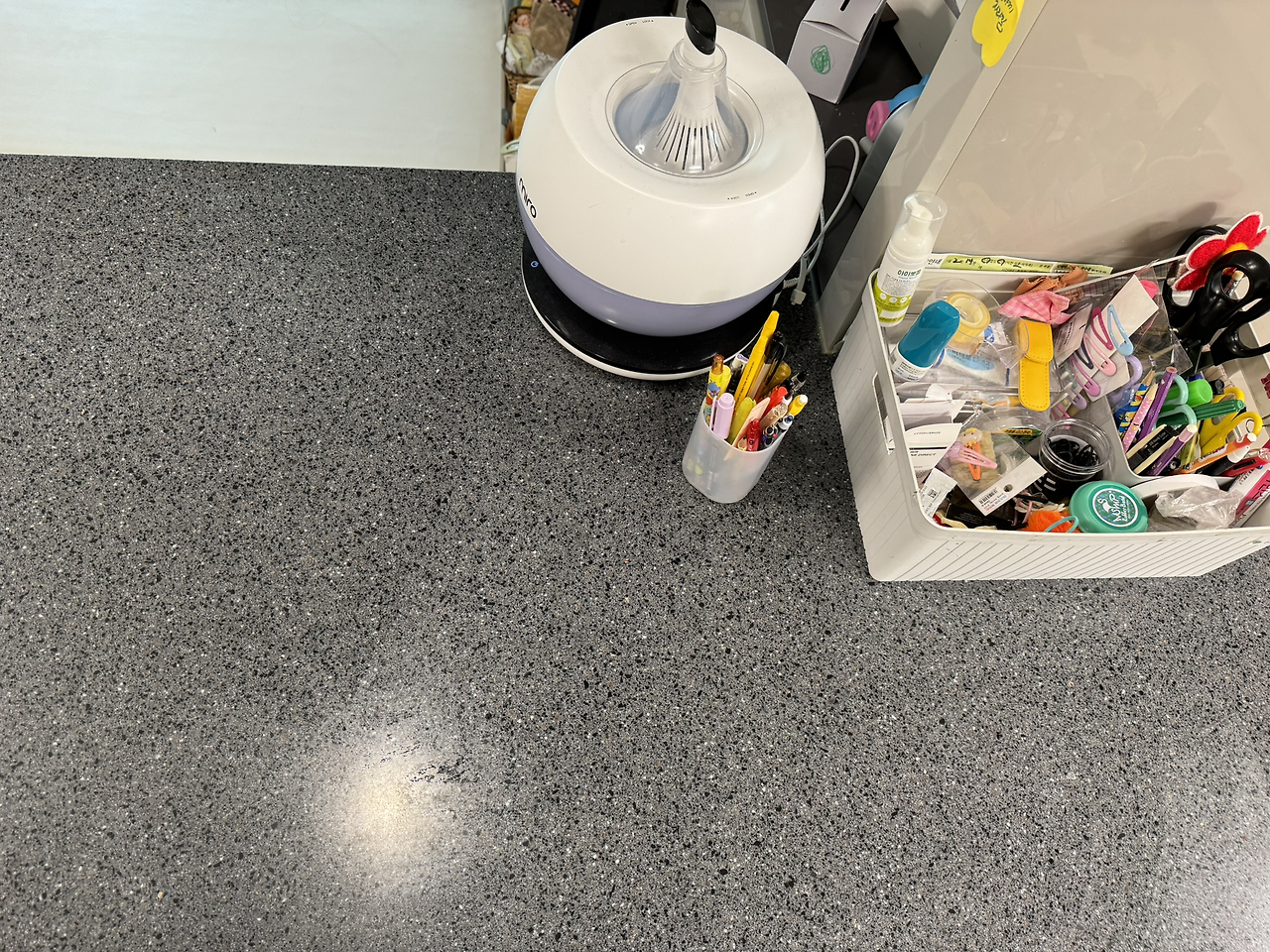 정리 후 아일랜드 식탁 모습. 그 전엔 저 바닥이 보이지 않았다.
