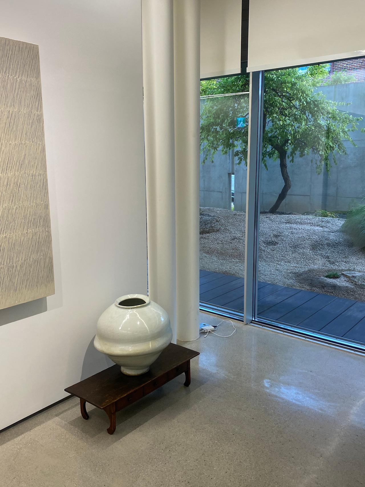 우주 행성 같은 백자가 눈에 띄었다. 백자는 보는 가도에 따라 꽃나무를 배경으로 삼는 수도 있고 하늘을 배경으로 삼을 때도 있다. 맑은 구름이 떠나가도 그늘이 지고 시시각각 태양의 농도에 따라 백자 항아리는 미묘한 변화를 창조한다. 그러니 백자 항아리를 보고 있으면 마음이 동한다. 사람이 어떻게 흙에다가 체온을 넣었을까? <어디서 무엇이 되어 다시 만나랴 - 김환기 >