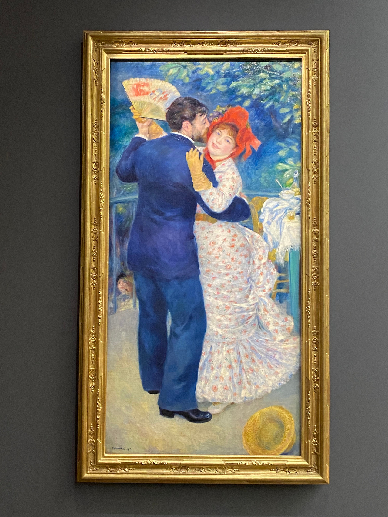 도시에서의 춤과 비교하며 보는 맛이 있는 작품인데, 아쉽게도 당시 작품이 대여됐었다. 그래도 한 작품이라도 볼 수 있어 얼마나 럭키인지. 두 그림에 모두 르누아르 친구인 폴 로트가 각기 다른 여성과 춤을 추고 있다. 작품 속 사랑스러운 눈빛을 하고 있는 이 여인은, 훗날 르누아르의 부인이 된다. 아니 르누아르 눈에 사랑스럽게 보였기에 부인이 되었겠지. :)