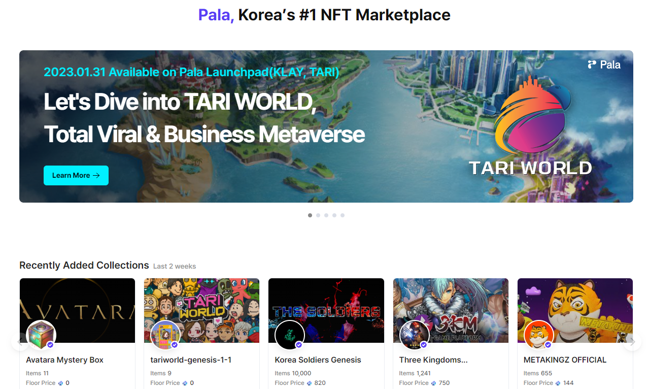 팔라의 가장 큰 비즈니스는 역시나 국내에서 가장 큰 거래량을 갖고 있는 NFT 마켓인 'PALA'인데요 카카오의 KLIP DROPS보다 많은 거래량을 보여주며, Opensea와 비슷한 유형의 NFT 마켓을 전개하고 있는 팔라는 국내에서는 마켓으로 압도적인 역량을 보여주고 있습니다.