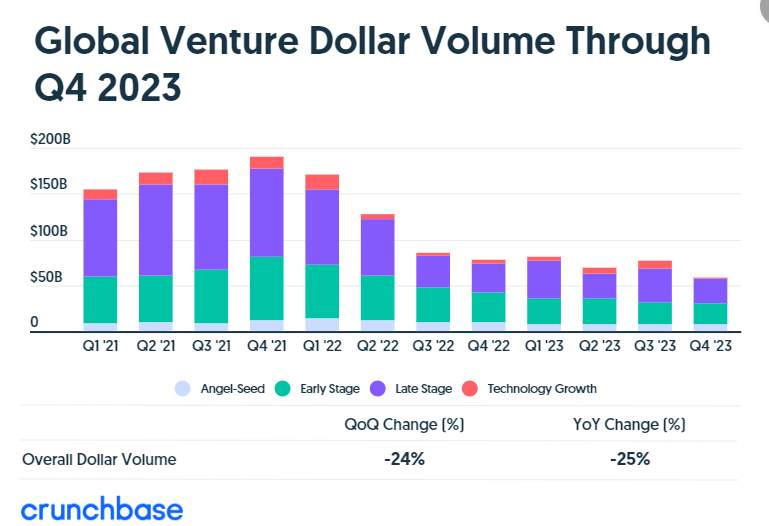 자금 운용이 점점 줄어들고 있는 상황입니다. (crunchbase)