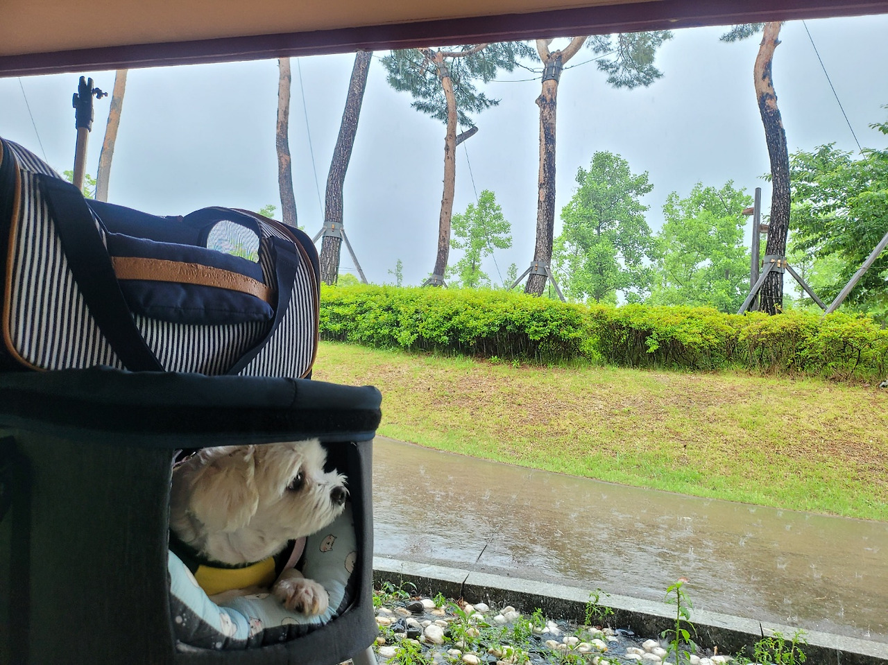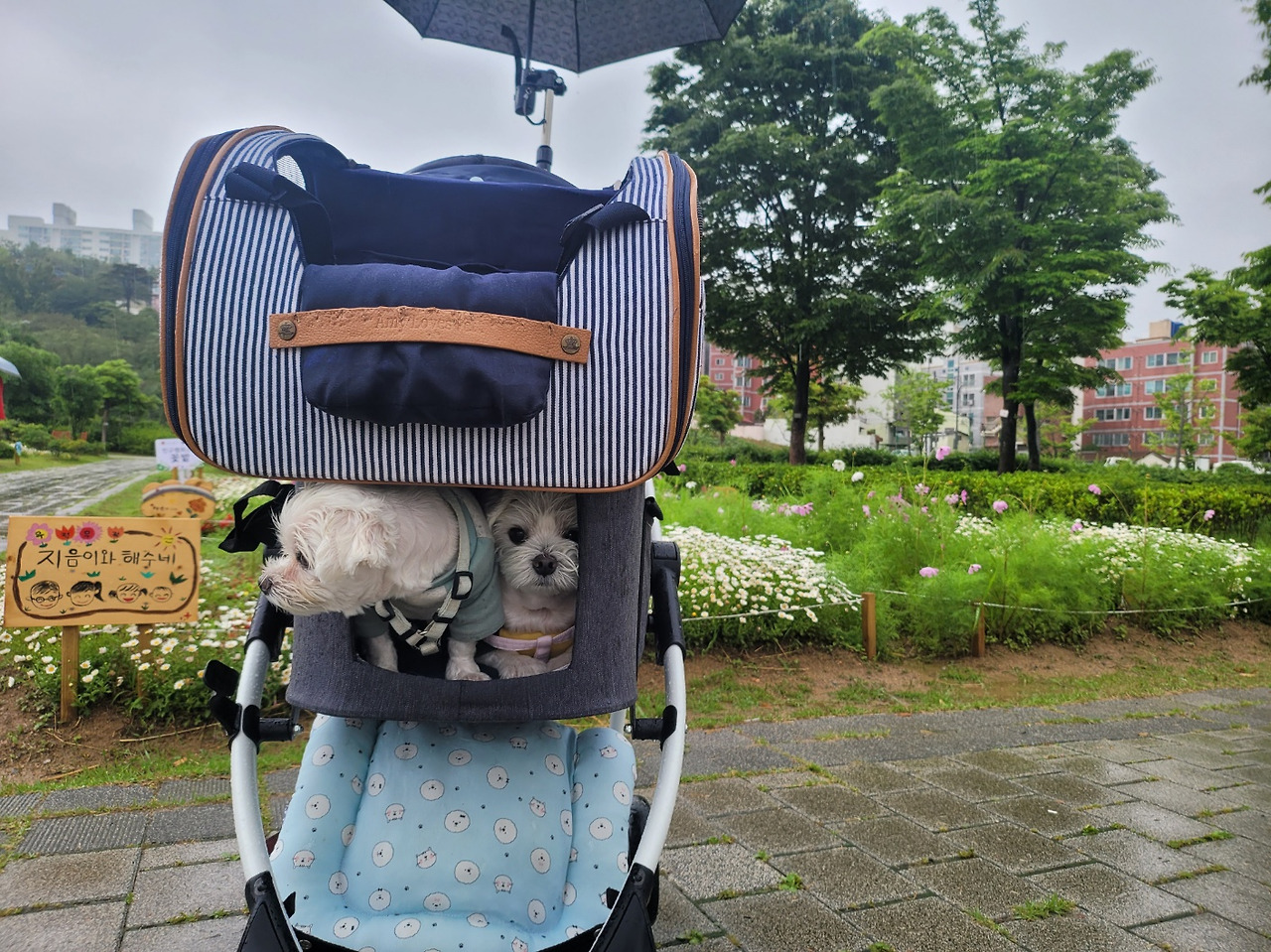 뿌는 세상 구경 욕심으로 뽀의 조망을 다 가렸고, 뽀는 앞이 안 보인다고 계속 칭얼댄다.ㅋㅋ