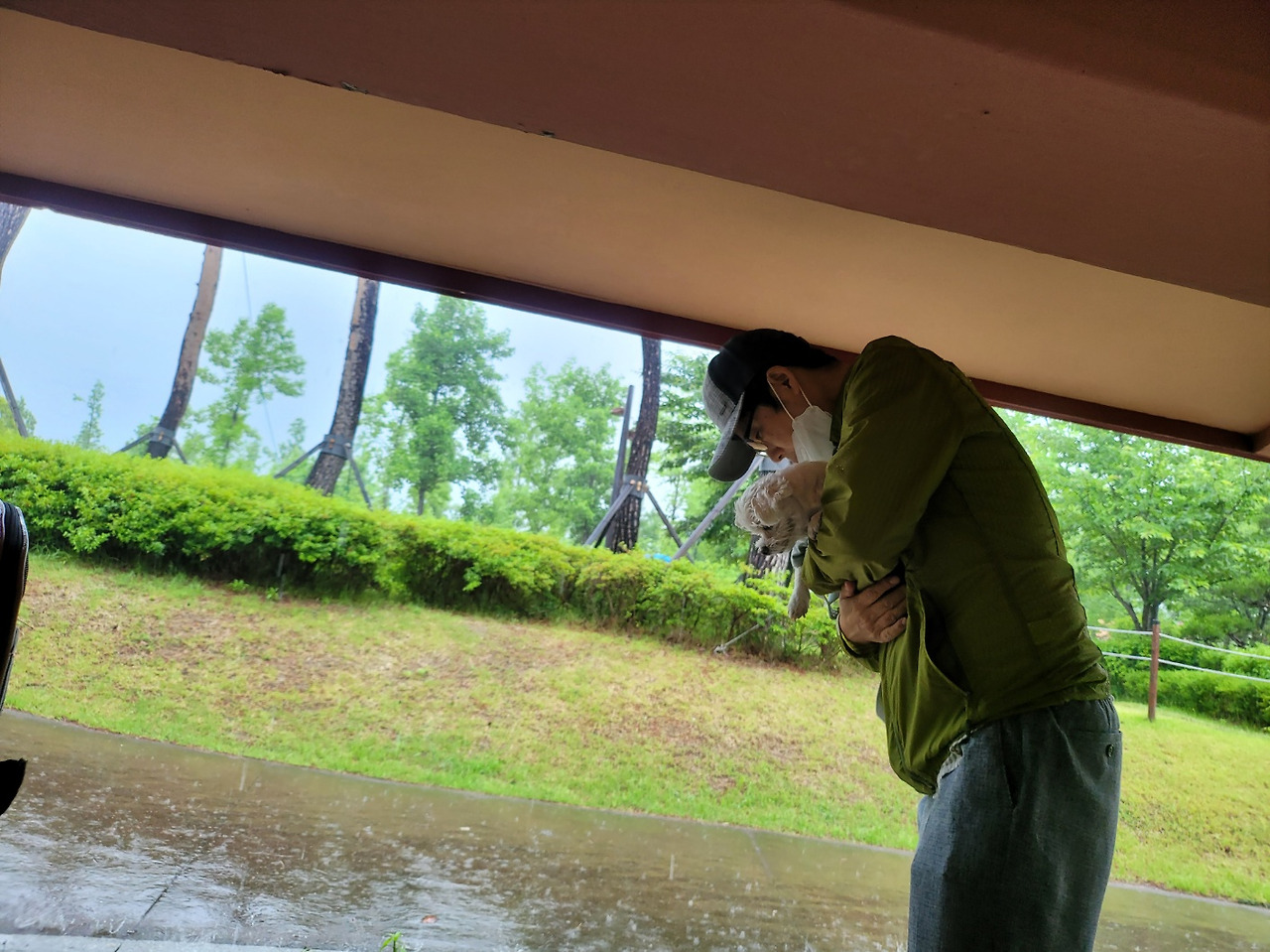 하지만 오늘은 비가 와서 2층을 지붕으로 사용했다.