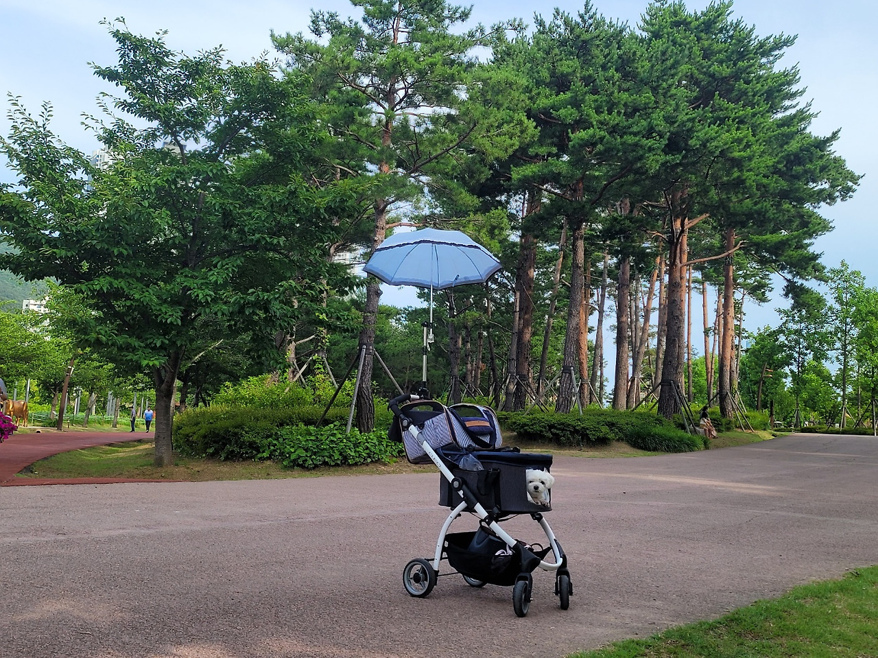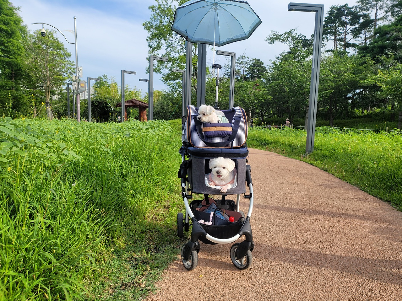 지나가는 사람들 마다 "유모차가 2층이네", "아이 귀여워라~", "원래 유모차에 양산이 달린 거예요?" 어김없이 한 마디씩 한다.