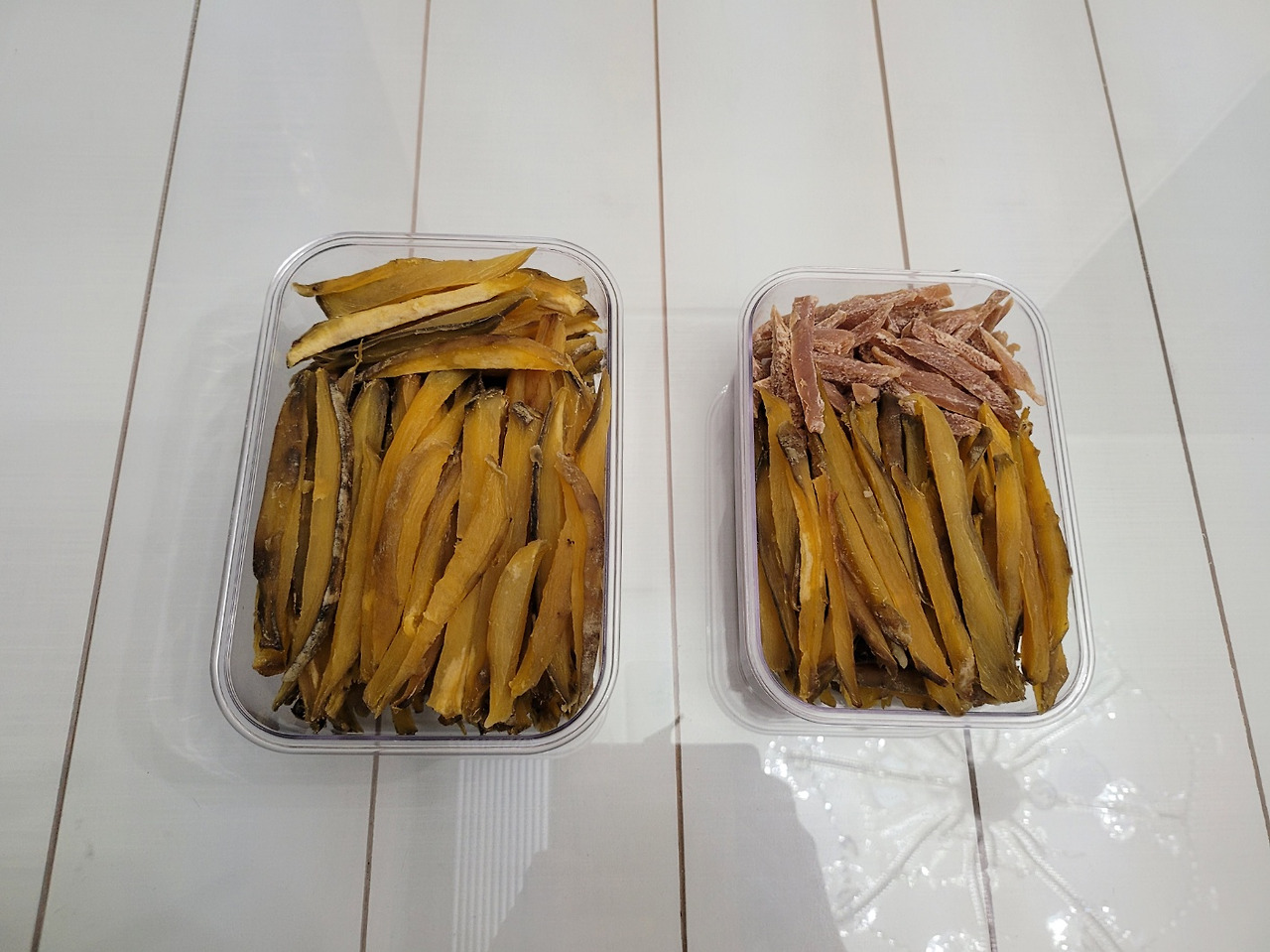 그동안 고구마를 바구니에 담아 뒤집기를 매일 반복하면서 1주일에 걸쳐서 고구마말랭이를 만들었는데, 너무 간단하게 끝났다.