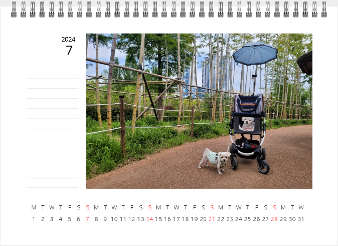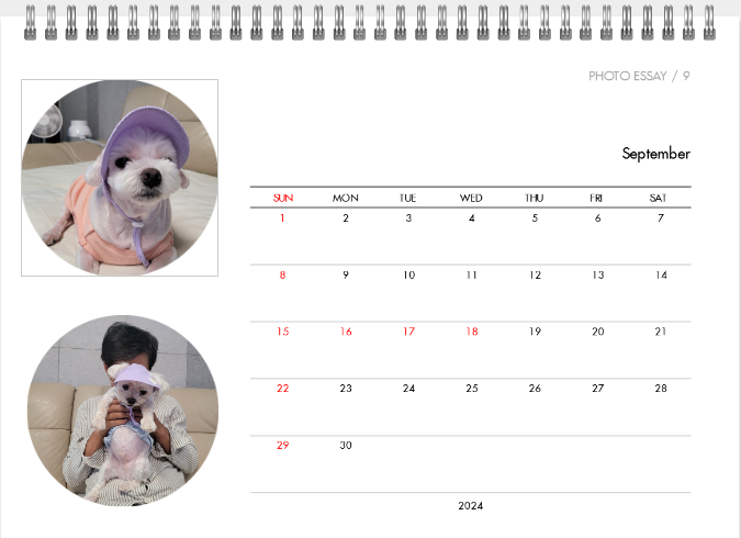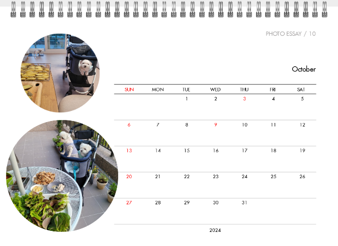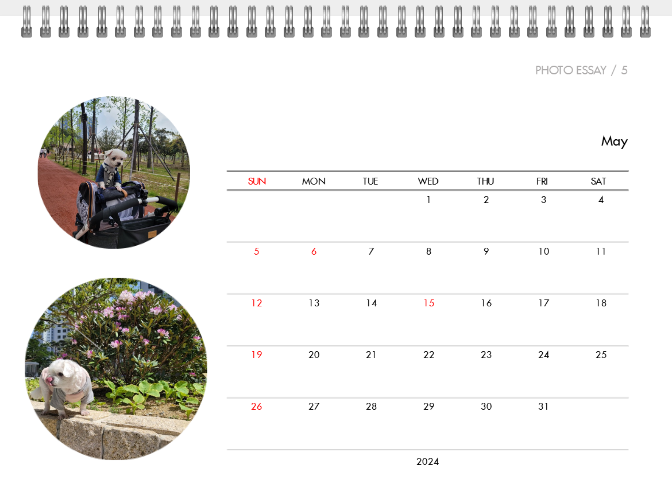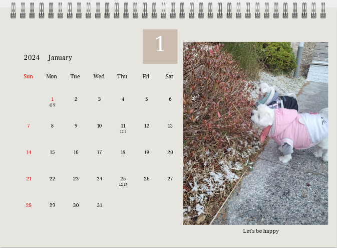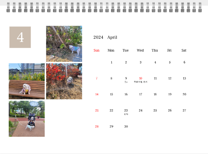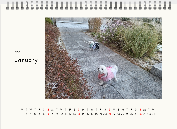 1년간 찍은 뽀와 뿌 사진으로 내년도 달력을 만들어 보았다.