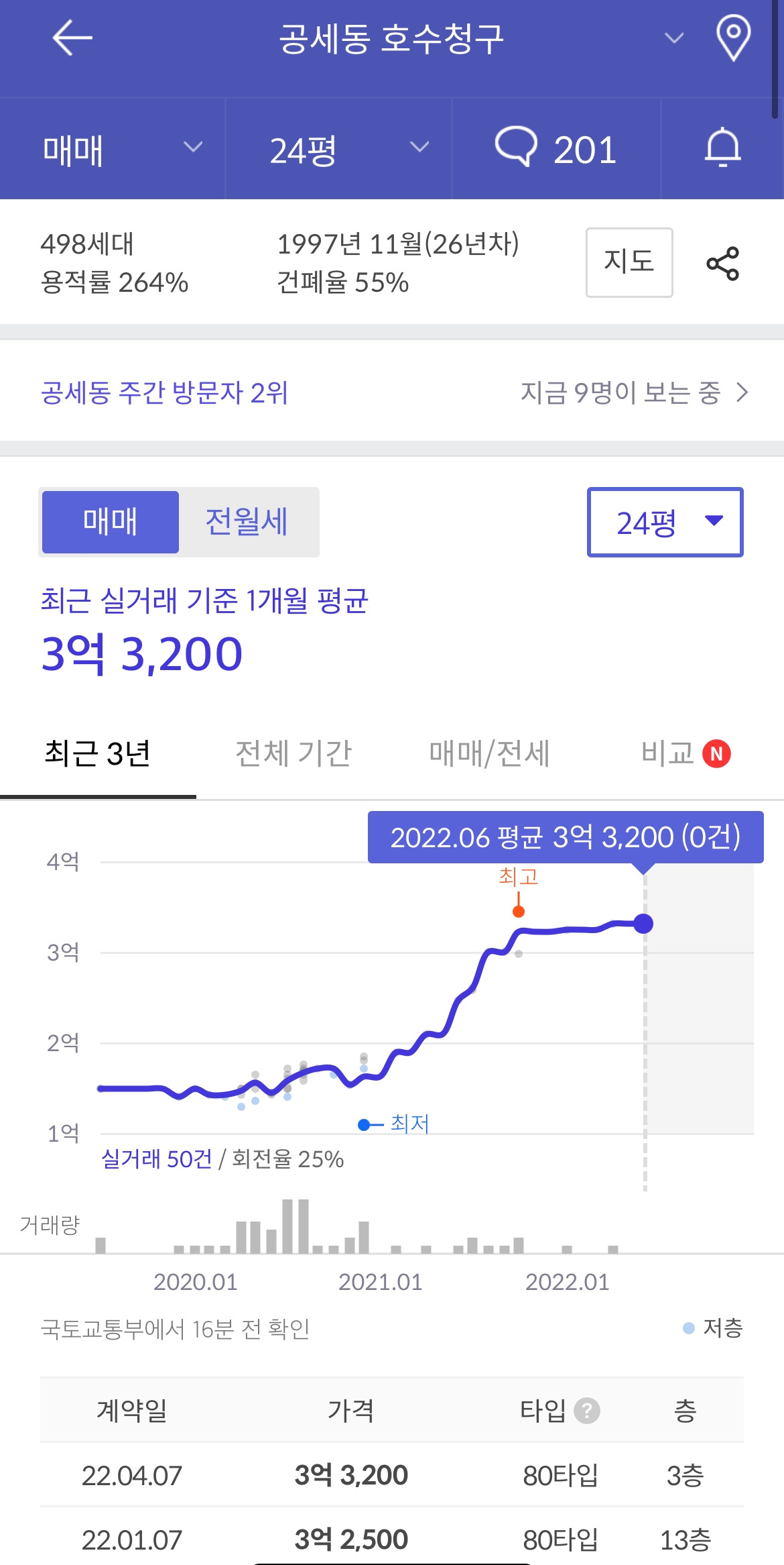2022년 1월 최근 실거래가는 3억 3,200만원.