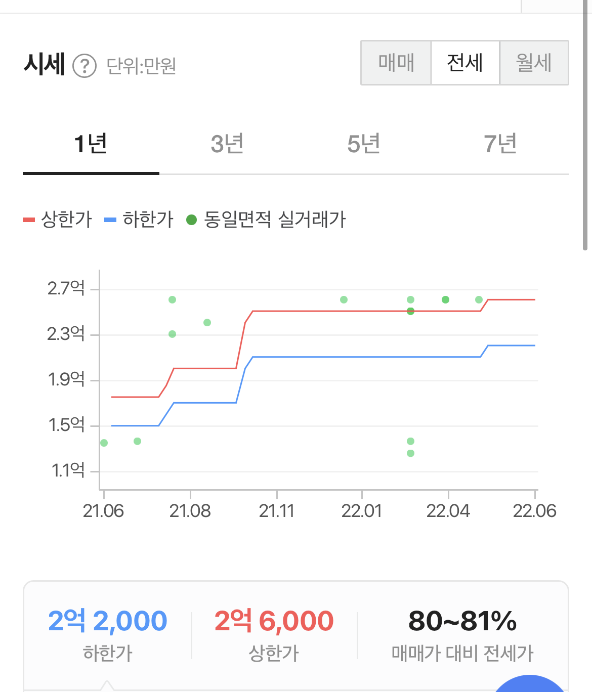 오늘자 (22.06.29) 기준으로 24평의 전세 매물은