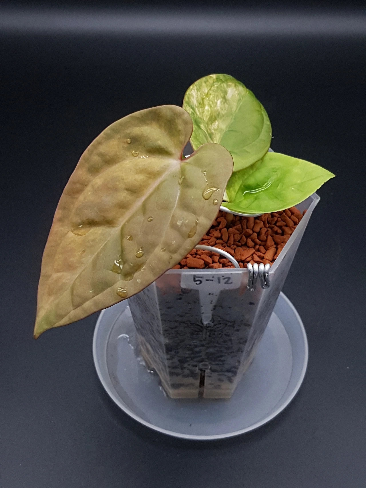 속이 비치는 투명한 화분에, 차가운 물을 머금고 있는 붉은 돌, 그 돌을 감싸 안고 있는 하얀 속살은 작은 식물임에도 강한 생명력이 느껴졌다.