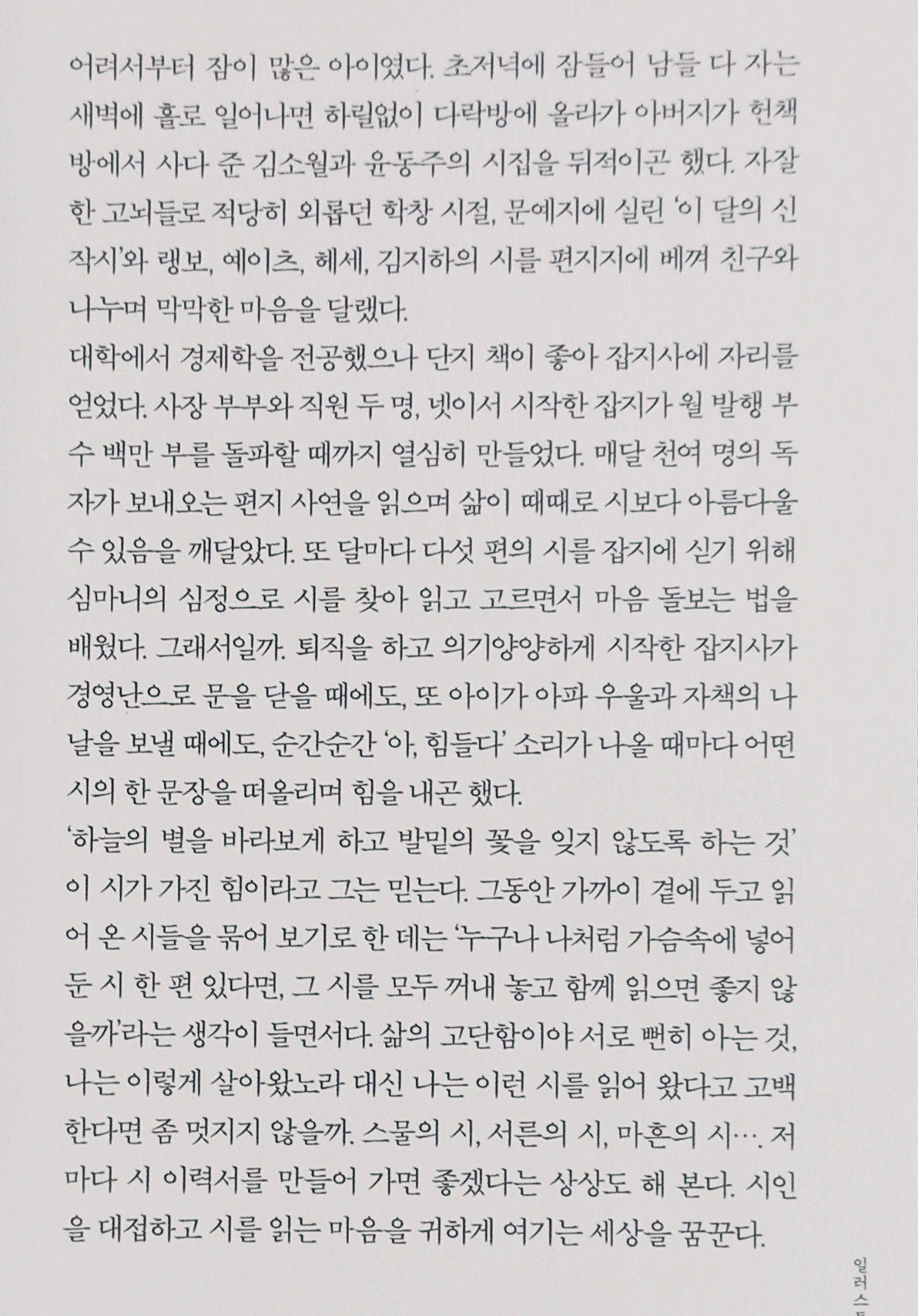 나는 시는 별로야라고 하는 작가분이 있다면, '시'를 '글'이나 '책'으로 바꿔서 읽어 보시길.