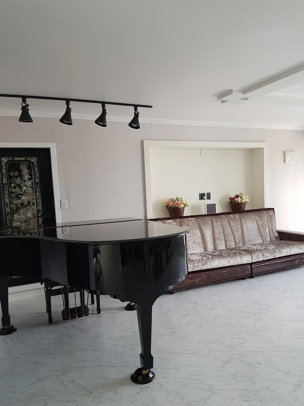 아들의 음악 방송실과 연습실, 또 다른 선생님의 편곡 사무실 , 그리고 내가 글을 쓰고 학생들 레슨을 하는 공간 , 그리고 홀은 작은 공연을 할 수 있는 곳으로 창문을 오픈하면 테라스와 연결되어