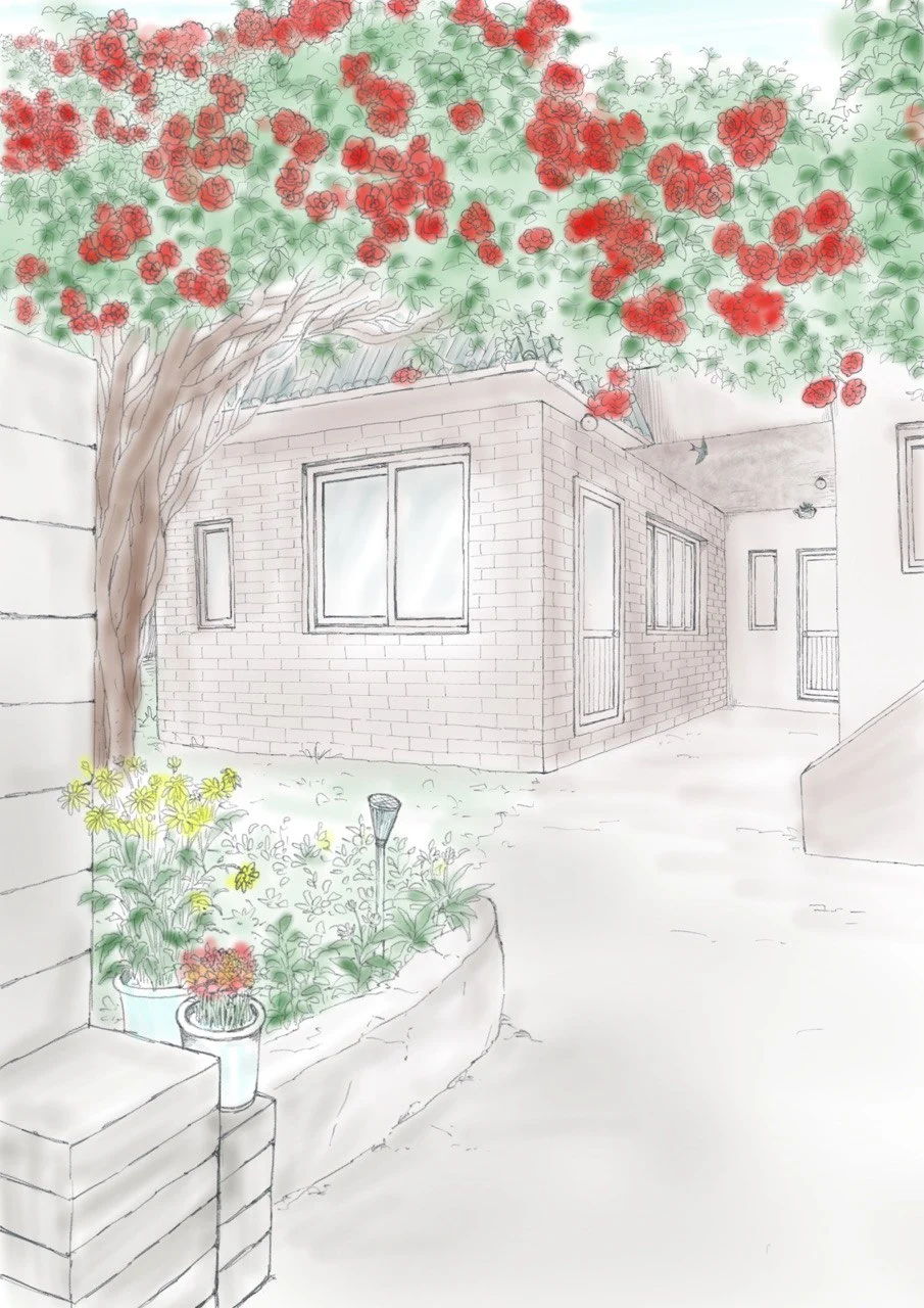빨간 장미 울타리가 되었다.