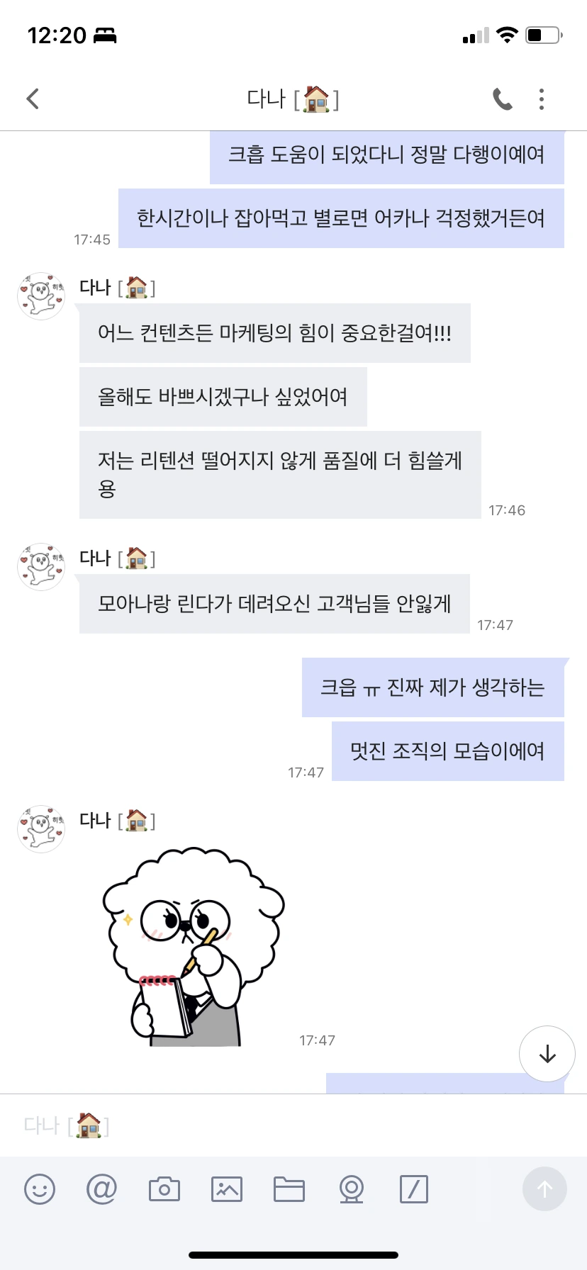 너무 다른 영역이기에 바쁜 시간을 뺏은건 아닐까라는 생각이 들었지만, 끝나고 다들 새로운걸 알게되어서 너무 좋았다고 하셔서 행복했던 그날. 다나의 말은 특별히 더 나에게 기억이 남는다(캡쳐해서 아직도 가지고 있는 그날의 기억....)