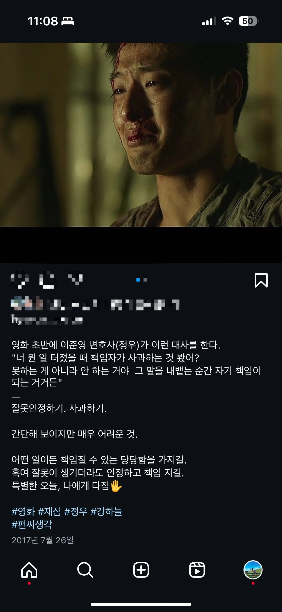 2017년 7월 26일. 인턴 합격 결과를 듣고 SNS에 아래와 같은 글을 남겼어요. 사회인으로 첫 시작을 하는 스스로가 다짐을 하는 글이었습니다. [잘못인정하기. 사과하기] 정말 괜찮은 어른이 되고 싶었어요.