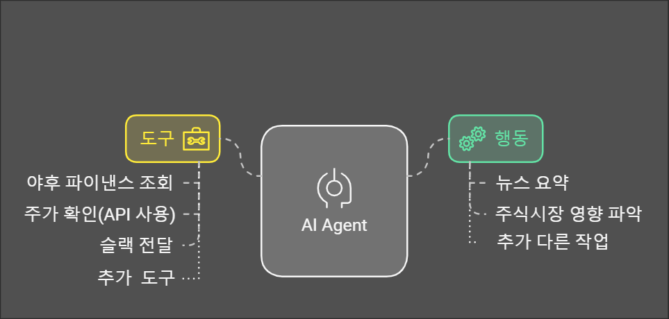 이러한 도구들은 AI Agent의 능력을 확장시켜주는 중요한 역할을 합니다. AI Agent는 특정 도구나 시스템을 통해 다양한 작업을 실행할 수 있습니다.