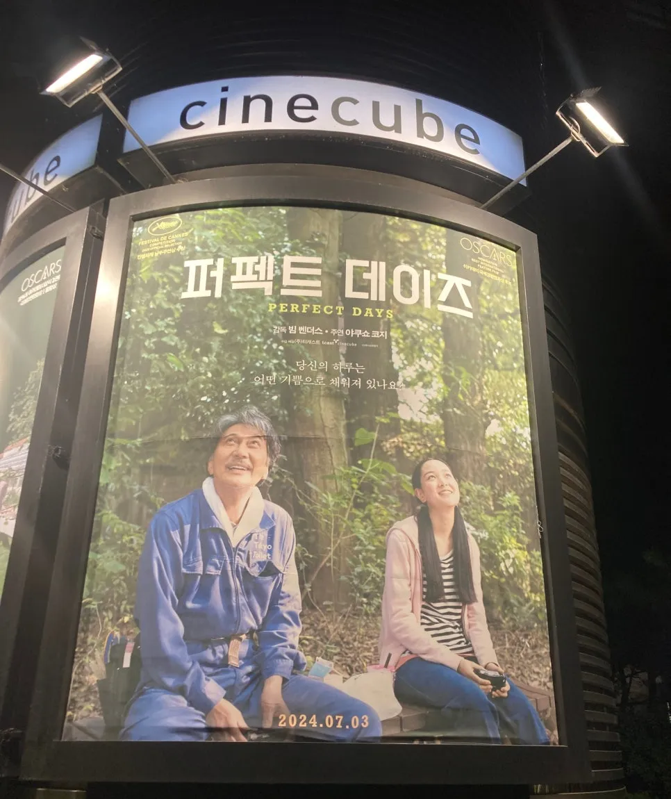 영화를 본 건 7월 4일 목요일. 영화를 보러 가기 전, 나는 좀 심드렁해져 있었다. 이전에 본 영화 <태풍 클럽> 때문인데 삶과 사람의 내면을 태풍처럼 할퀴는 이 영화로 인해 세상을 보는 내 관점이 뒤틀려져 있었다(아무튼 감응이 참 잘 되는 스타일인 거다). 회복하려면 조금 더 시간이 필요했다. 그래서인지 <퍼펙트 데이즈>라는 제목에 작지만 뚜렷한 반감을 느꼈다. 기실 삶은 고통과 혼란의 연속인데 '완벽한 날' 같은 것이 존재할 리가 없지 않은가(거기에다가 복수형 '즈'라니). 10점 만점에 8점 정도로 '자기 계발'과 '힐링'의 열풍을 이용한 그저 아름답기만 한 영화일 것이라 추측하며 밤극장으로 향했다.