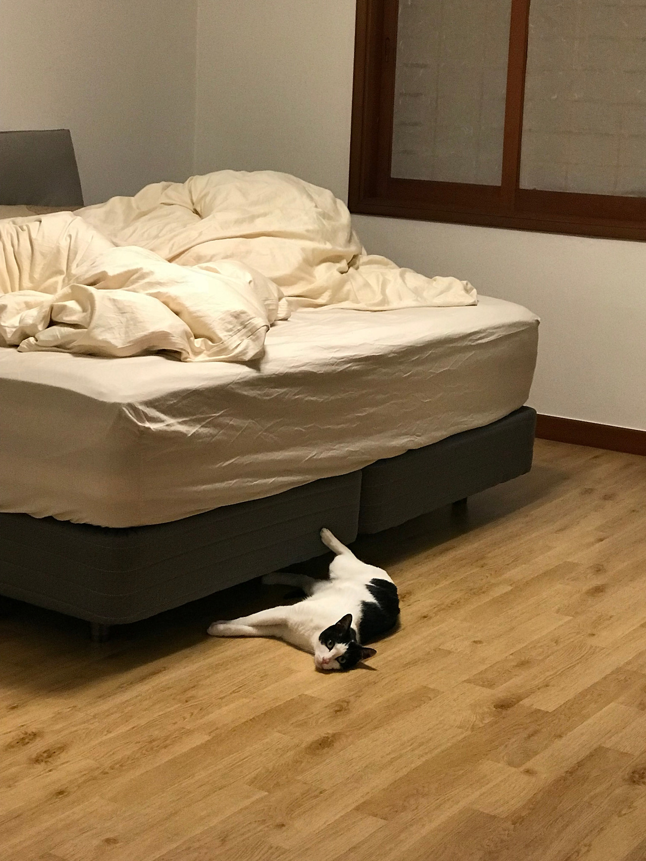 <떠나기 전날 밤. 병원에서 퇴원하고 오자마자 비틀비틀 거리며 복층에 올라가고 싶어 했던 야몽이.