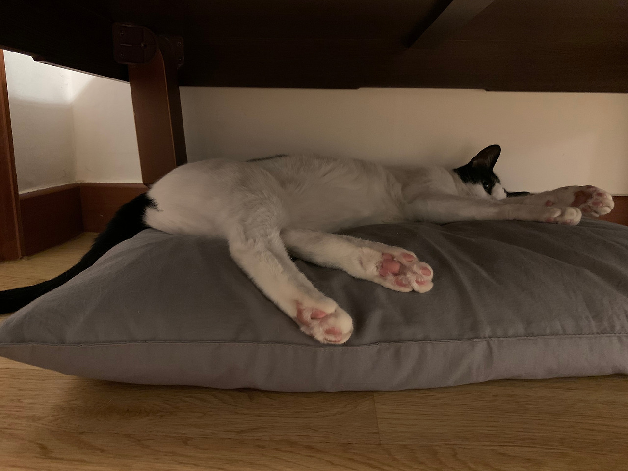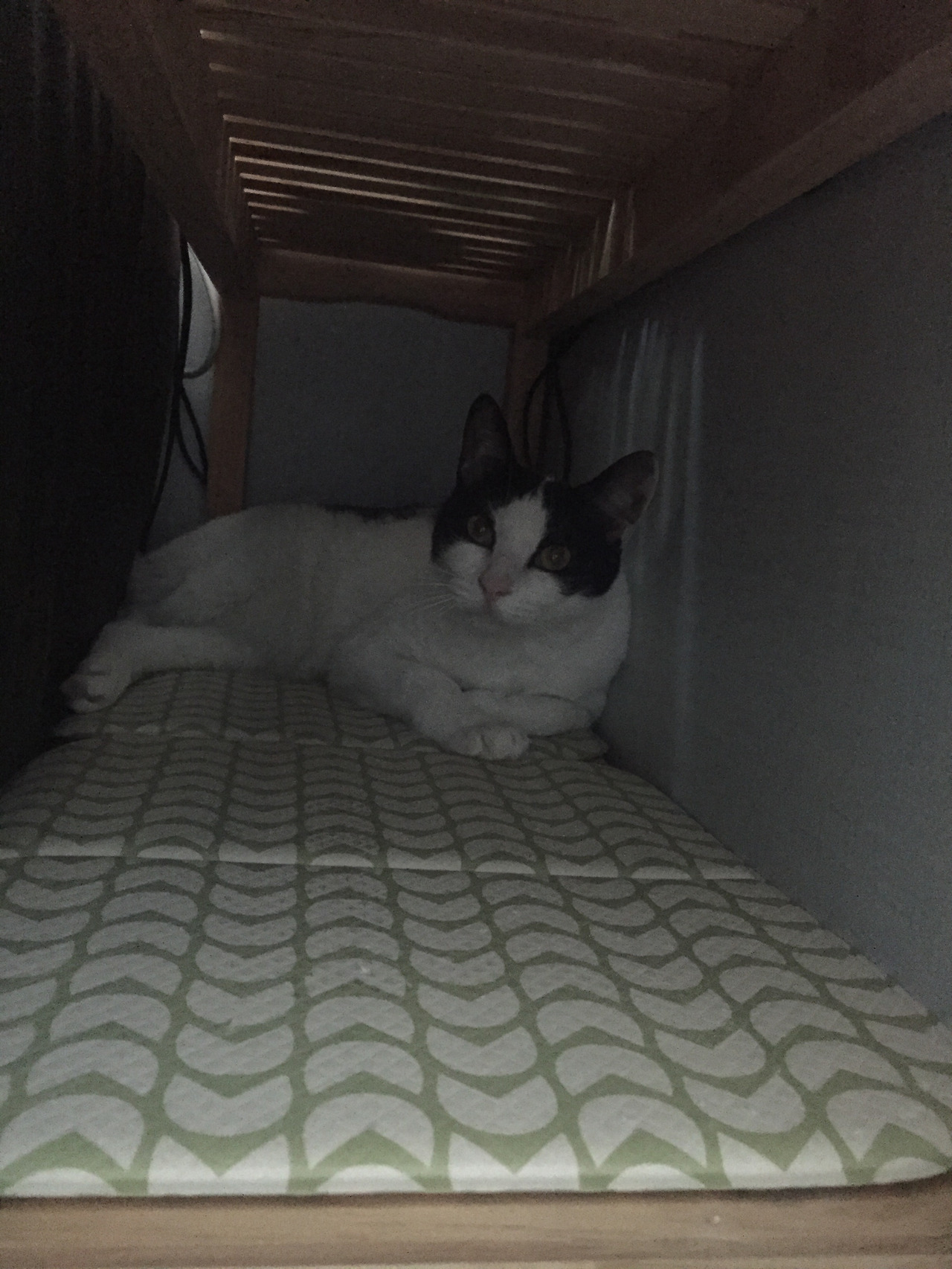<뭐니 뭐니 해도 우리 애기 묘생 최고의 아지트는 여기였지 싶다. 세상이 무너지지 않는 한 누구에게도 잡히질 않을 공간. 앞발 포갠 것 좀 보라지>