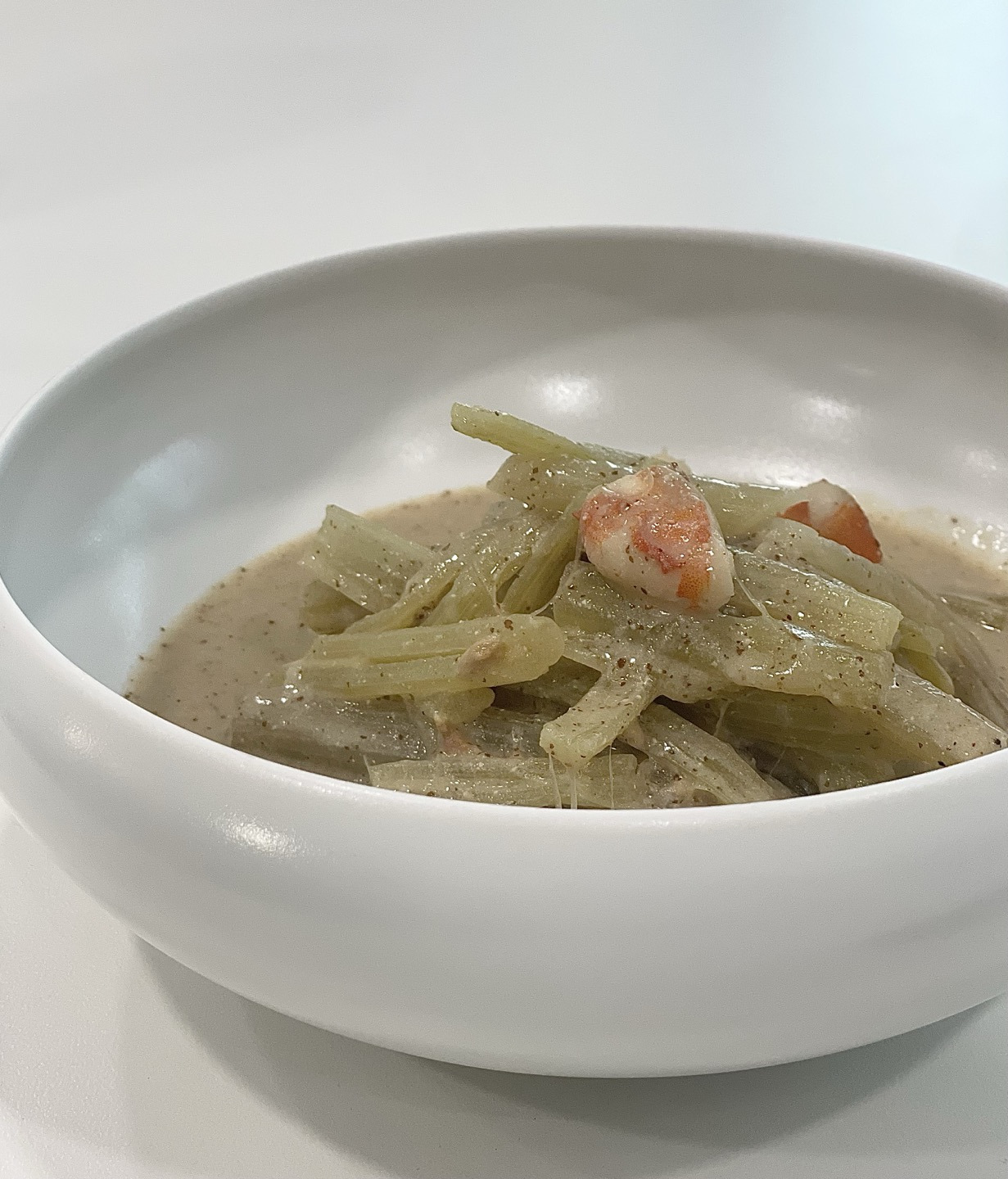 4. 육수와 새우를 3에 넣고 들깨가루를 넣고 끓인다.