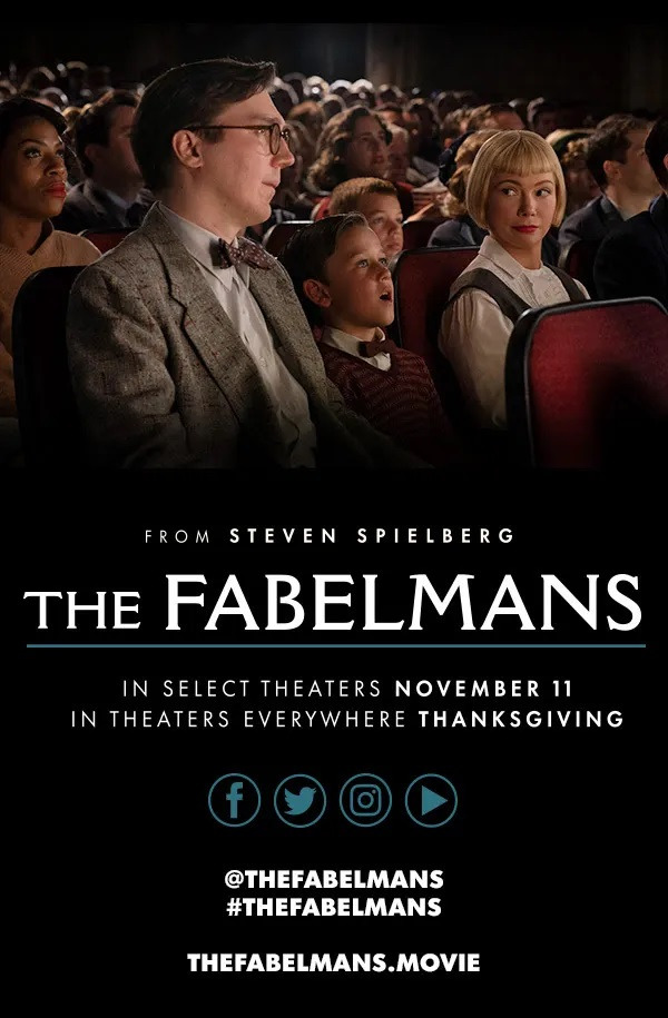 이 영화는 스티븐 스필버그의 어린 시절에 대한 자전적인 작품입니다. 스필버그의 경력으로 볼 때 한 편 정도는 나올때가 되었다고 생각했습니다. 포스터를 보면 극장에서 어린 남자애가 부모 사이에 앉아서 어떤 장면을 보면서 놀란 표정을 짓고 있습니다. 이 장면이 사실 영화에서 가장 중요한 장면입니다. 화면에서는 현재 멈춰선 기차와 그 앞의 승용차를 또다른 기차가 달려오면서 충돌하는 장면이 벌어지고 있습니다. 사방으로 차량이 쏟아지고 거기에 있던 사람들도 모두 흩어지는 그런 장면. 이런 장면이 나올거라고는 부모도 예측을 못했습니다만, 어린 아들은 이 절체절명의 "스펙터클"에 완전히 빠지게 됩니다.