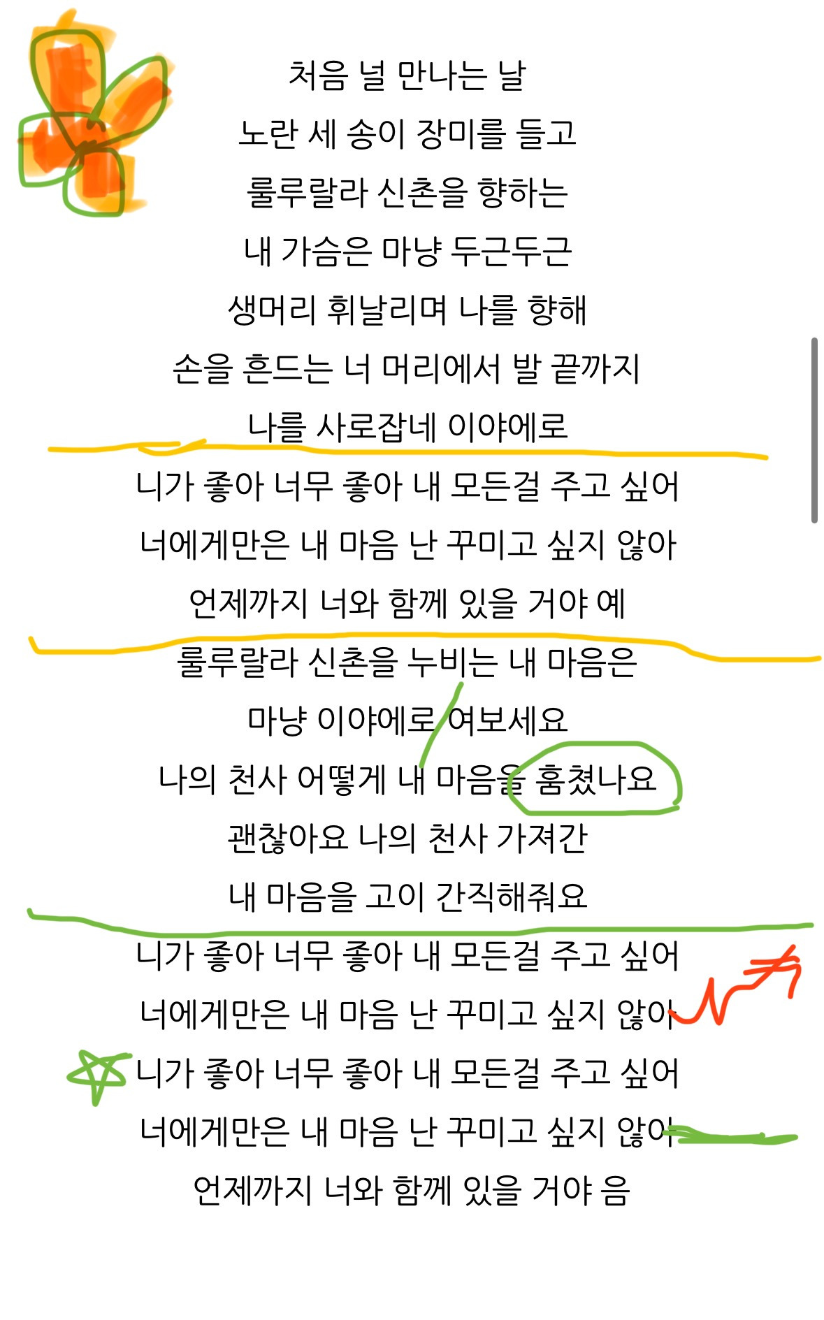 헷갈릴까 봐 가사에 포인트 있게 메모를 해둬서