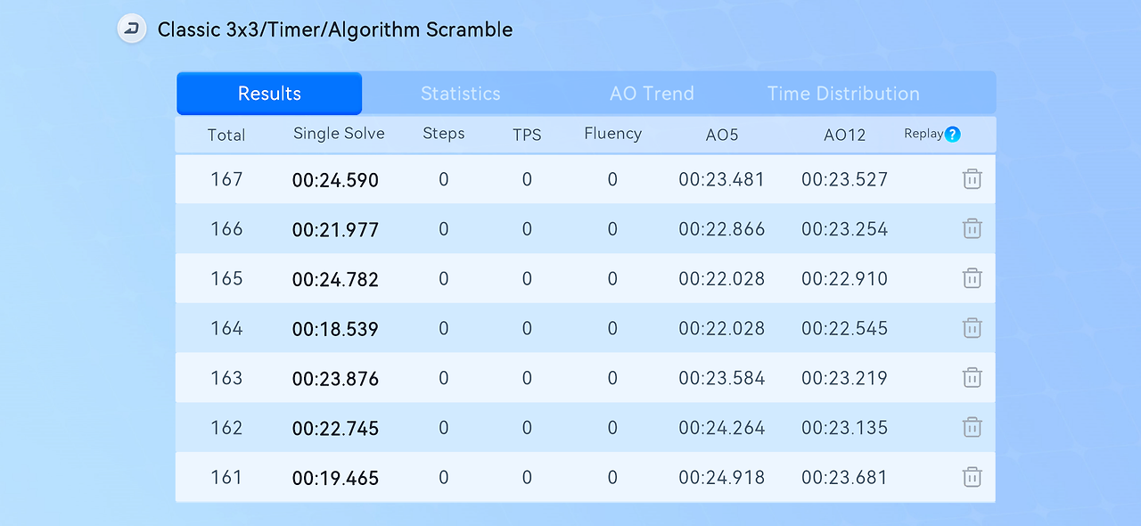 CS Timer라고 하는 앱이 있는데, 장비와 블루투스로 연결이 되어서 기록 데이터를 누적해서 쌓을 수 있다.