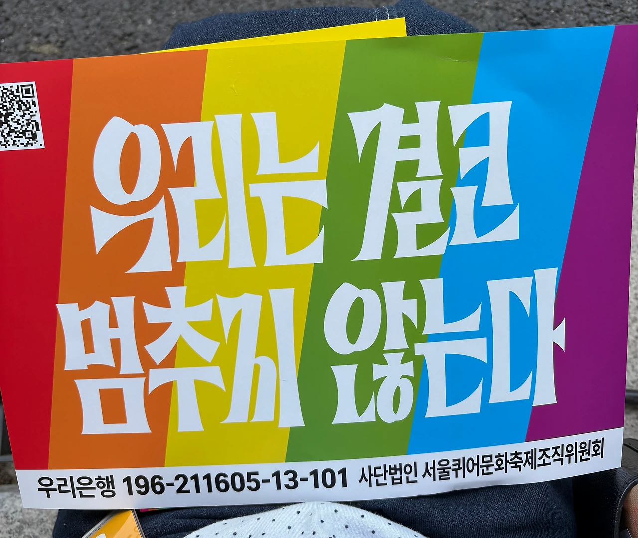 찌는 듯한 무더위에도 주최 측 추산으로 약 17만 명의 시민이 모였다. 역대 퀴어퍼레이드 중 최고 인원이다. 누군가 눈앞에서 고성을 지르고 혐오 발언을 뱉을 때면 퀴어와 앨라이[6]들은 분노로 맞받는 대신 박수와 환호로 응답했다. 온몸에 대변을 바른 채 달려오거나 악을 쓰며 회개하라고 괴롭게 울부짖는 사람들을 건너, “다름을 축복하고 존재를 드러내며” 자긍심과 사랑을 ‘결코 멈추지 않는’ 평화로운 행렬이 이어졌다. 서울의 중심을 크게 돌아 종각역에서 을지로입구역으로 돌아오는 약 3km의 행진은 무사히 마무리되었다.