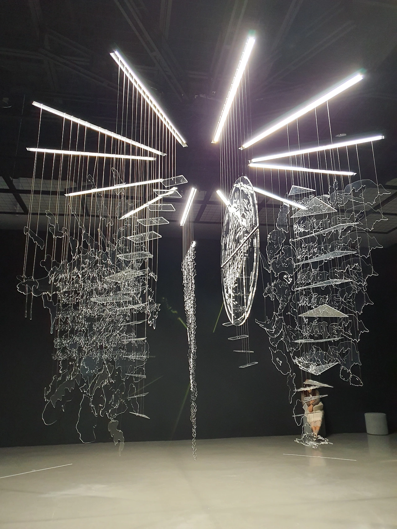 전시 작품 중 가장 인상 깊었던 작품은 권은비 작가의 <노동의 지형학-12개의 장면들>이다. 아크릴 판을 매달아 둔 조형 작품을 보며 오디오를 듣게 되어있다. 아크릴 판과 오디오를 대조하며 어느 아크릴 판이 어느 오디오와 연결되어있는 작품인지 생각해보는 재미가 있는 작품이다. 아크릴판의 모양은 꽤 추상적이어서 사실 어떤 오디오에 대입해도 나름 다 말이 될 듯싶었다. (물론 어느 아크릴 판은 나타내는 내용이 분명한 것도 있었다.) 이 작품은 노동자의 "있음" 즉 존재에 주목한다. 내가 앞서 나의 노동이 옅어진다고 느낀다 말했기에 이 작품이 특히 와닿았는지도 모르겠다.