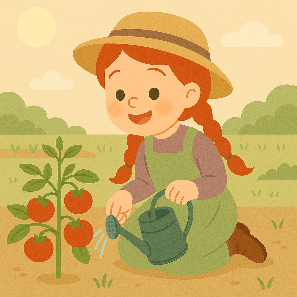 고요한 텃밭에서 풀을 뽑고 있었어요.