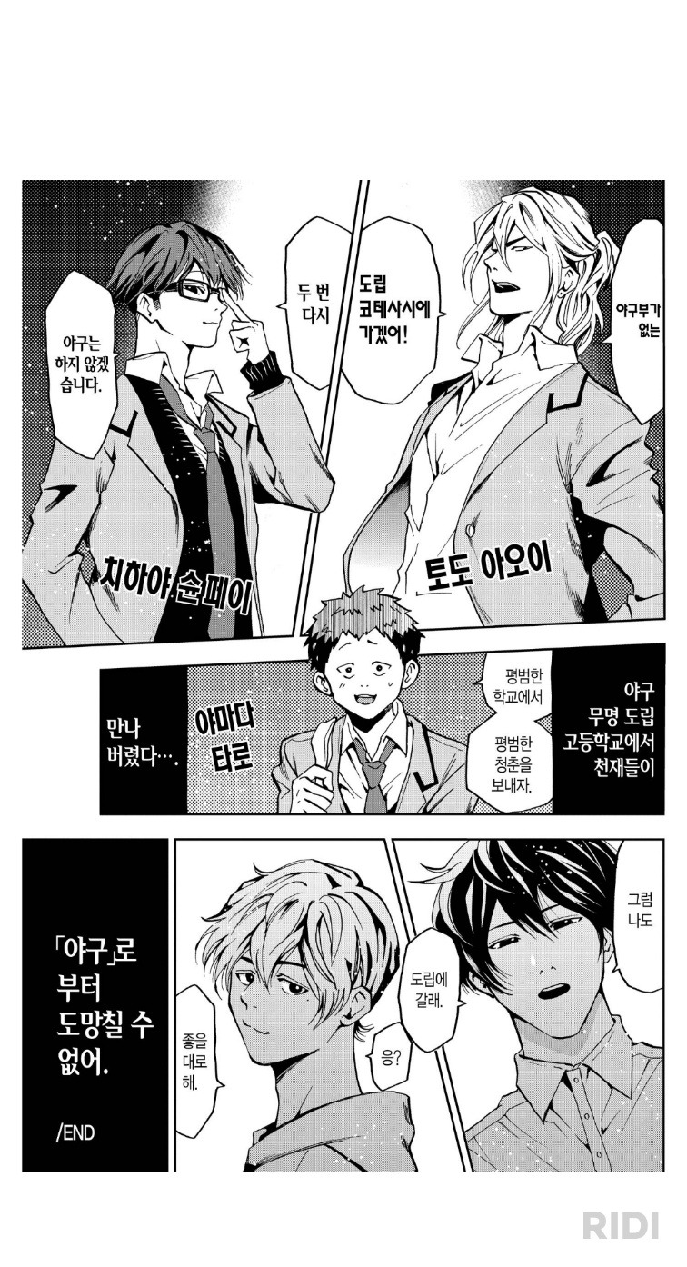 개그 호불호가 크게 갈리는 작품이지만 뛰어난 야구 작화와 캐릭터들의 감정선을 적절하게 연출하며, 무엇보다 일관적인 주제와 임팩트 있는 경기장면이 인상깊은 작품이니 관심이 가신다면 한번쯤 찾아 보셔도 좋을 것 같습니다.