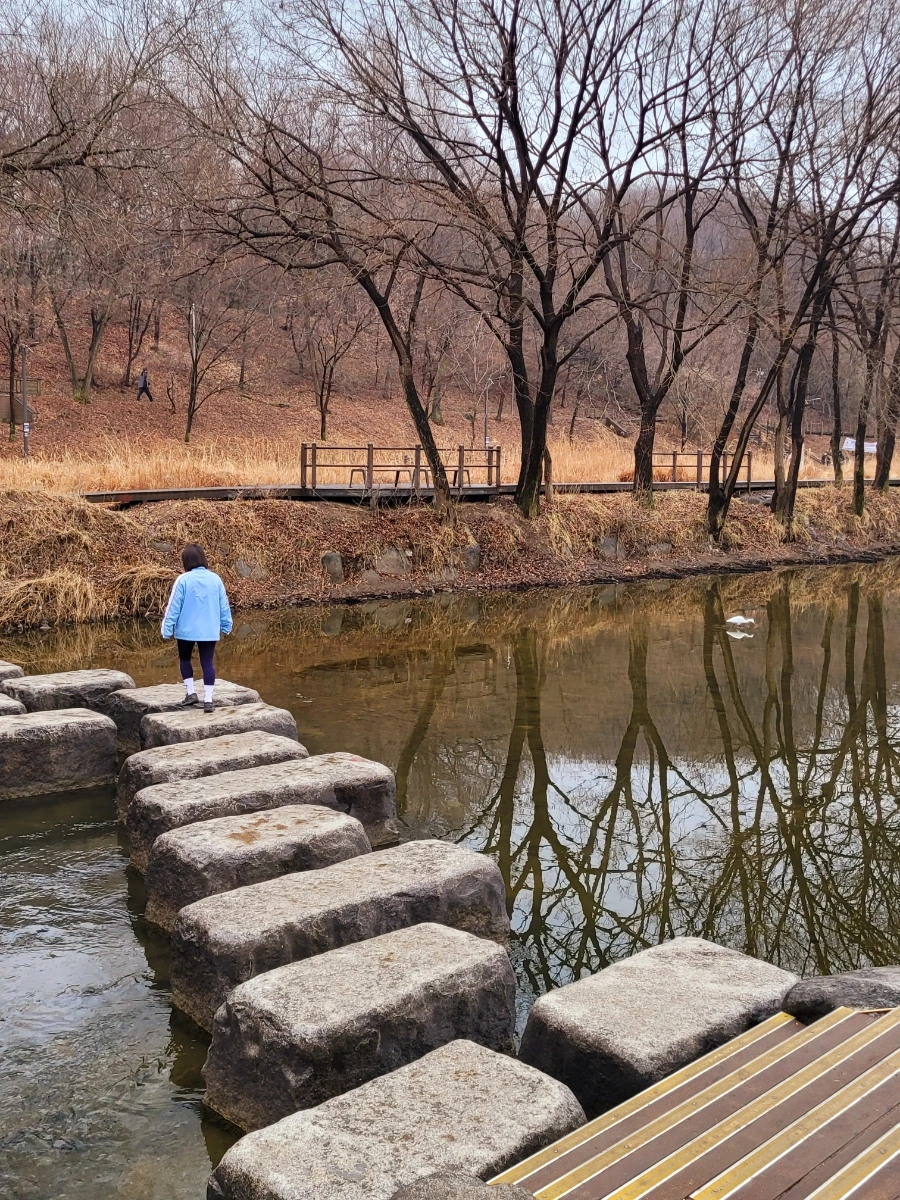 나는 양재천 공원을 산책하면서 수시로 징검다리를 건너 다닌다.시냇물에 놓여있는 돌다리는 언제 보아도 친구처럼 다정하고 믿음직하다. 비바람이 세차게 불어도, 눈발이 휘날려도 양재천을 건너는 사람을 위해 늘 그 자리를 굳세게 지키고 서 있다. 나는 사람들이 양재천 돌다리를 딛고 건너는 모습을 바라보면 이타심이 생각나고 나 자신을 한번 뒤돌아보게 된다.