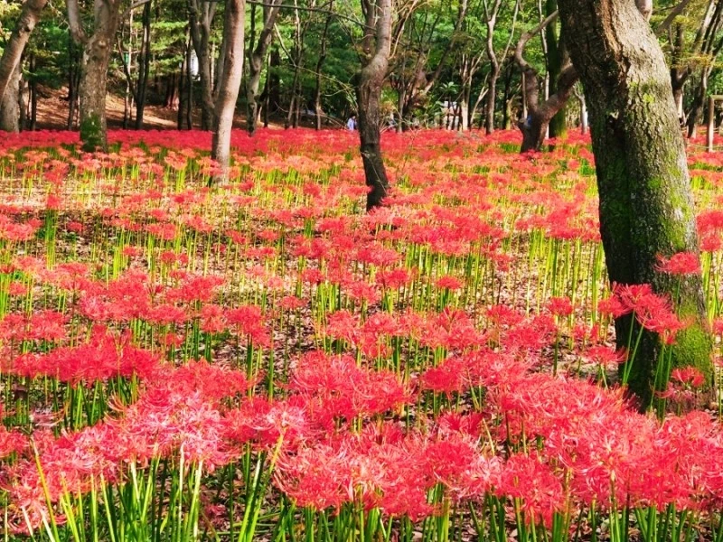 꽃무릇은 만개하였으나 꽃잎은 보이지 않았다. 꽃무릇은 꽃이 떨어진 다음에 짙은 녹색의 꽃잎이 나오므로 꽃과 잎이 서로 만날 수 없다. 그래서 슬픈 꽃이라 부르고 꽃말은 '이루어질 수 없는 사랑'이다. 공원에는 빛깔 고운 꽃무릇을 구경하고 사진을 찍거나 벤치에 앉아 상념에 젖는 사람이 많이 눈에 띄었다.