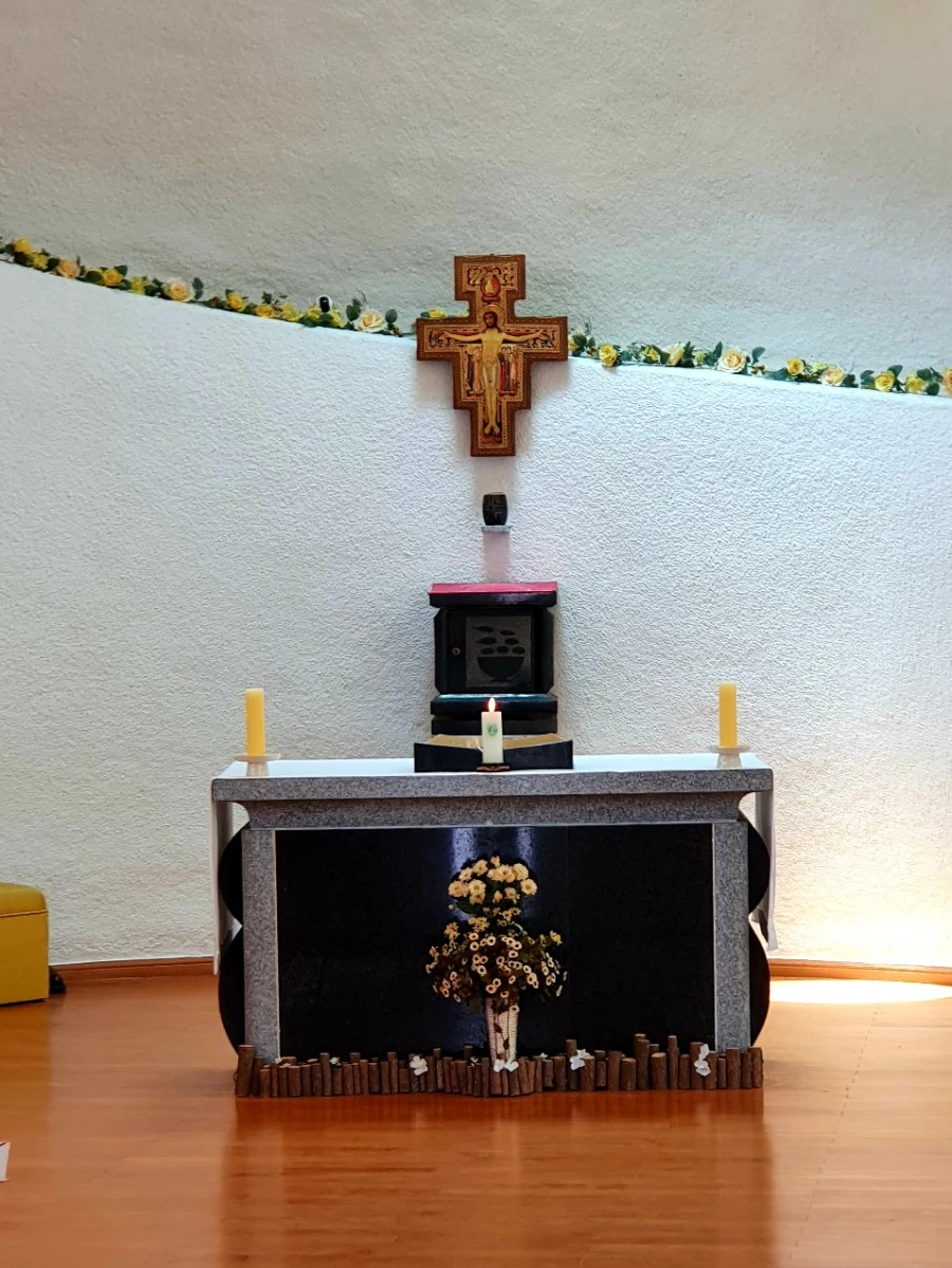 성당 입구에서는 성경 이어쓰기를 하고 있었는데, 아들은 한참 동안 성경을 노트에 옮겨 적었다. 성당은 아름답고 소박한 느낌을 주었으며, 여러 관광객들이 둘러보고 있었다.