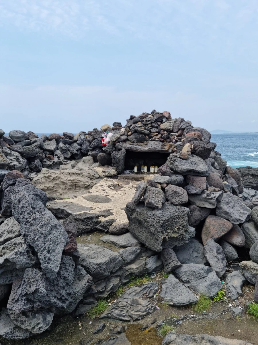 어느 섬이나 전설이 있지만 마라도 주민들이 수시로 할망당으로 가, 제사를 지내며 집착하는 것은 척박한 땅에서 고단함을 함께 해온 할망신이 자신들의 고충을 잘 이해할 수 있을 거라고 믿기 때문이다. 할망당 안을 들여다보니 불 켜진 초가 여러 개가 보였다.