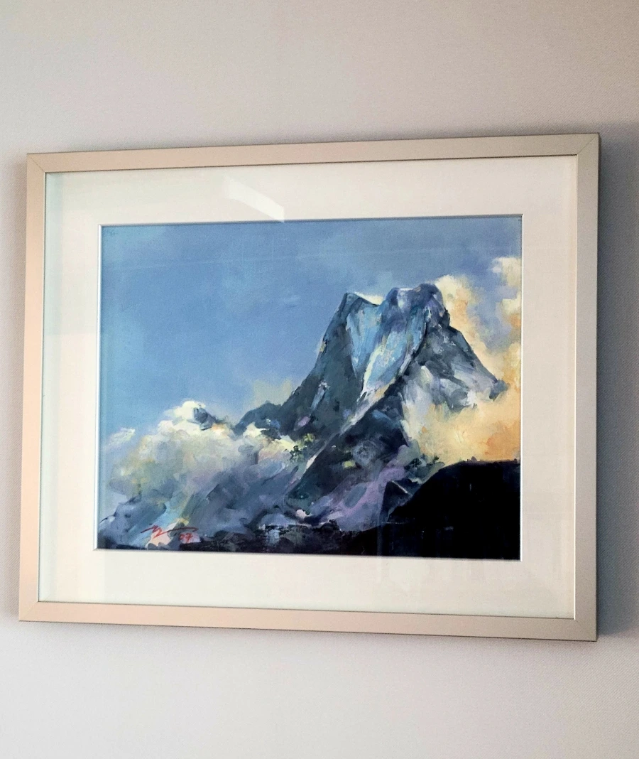 약속 시간이 되자 그는 그림을 들고 나타났다. 그림은 히말라야 마차푸차레산을 그린 유화로 2007년에 그렸다고 한다. 사진으로 이미 본 적이 있는 그림이다. 그는 히말라야에 가보고 싶었지만 바쁜 생활 때문에 가지 못하고, 대신 동료가 보내준 히말라야 사진을 보고 그렸다. 이 산의 이름은 마차푸차레산(6,993m)이다.