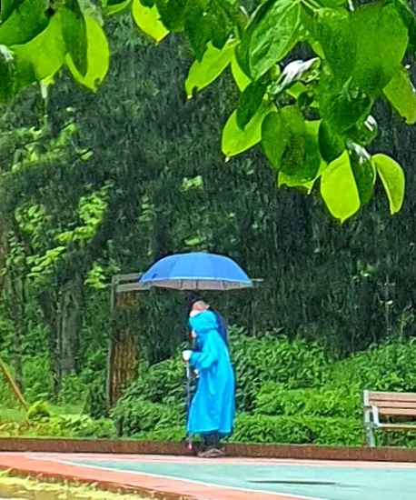공원에는 이웃 노인 부부가 빗속에서 두 손을 꼭 잡고 걸어가는 모습이 보였다. 거동이 많이 불편한 할머니를 할아버지가 부축하여 천천히 걷고 있었다. 봄비가 세게 쏟아지는 날, 부부가 손을 꼭 잡고 걷는 모습을 바라보니 마음이 애틋했다. 한편, 아내를 돕는 자상한 할아버지가 존경스럽고, 빗속을 걸으며 열심히 운동하는 할머니 의지도 대단하다고 느꼈다.