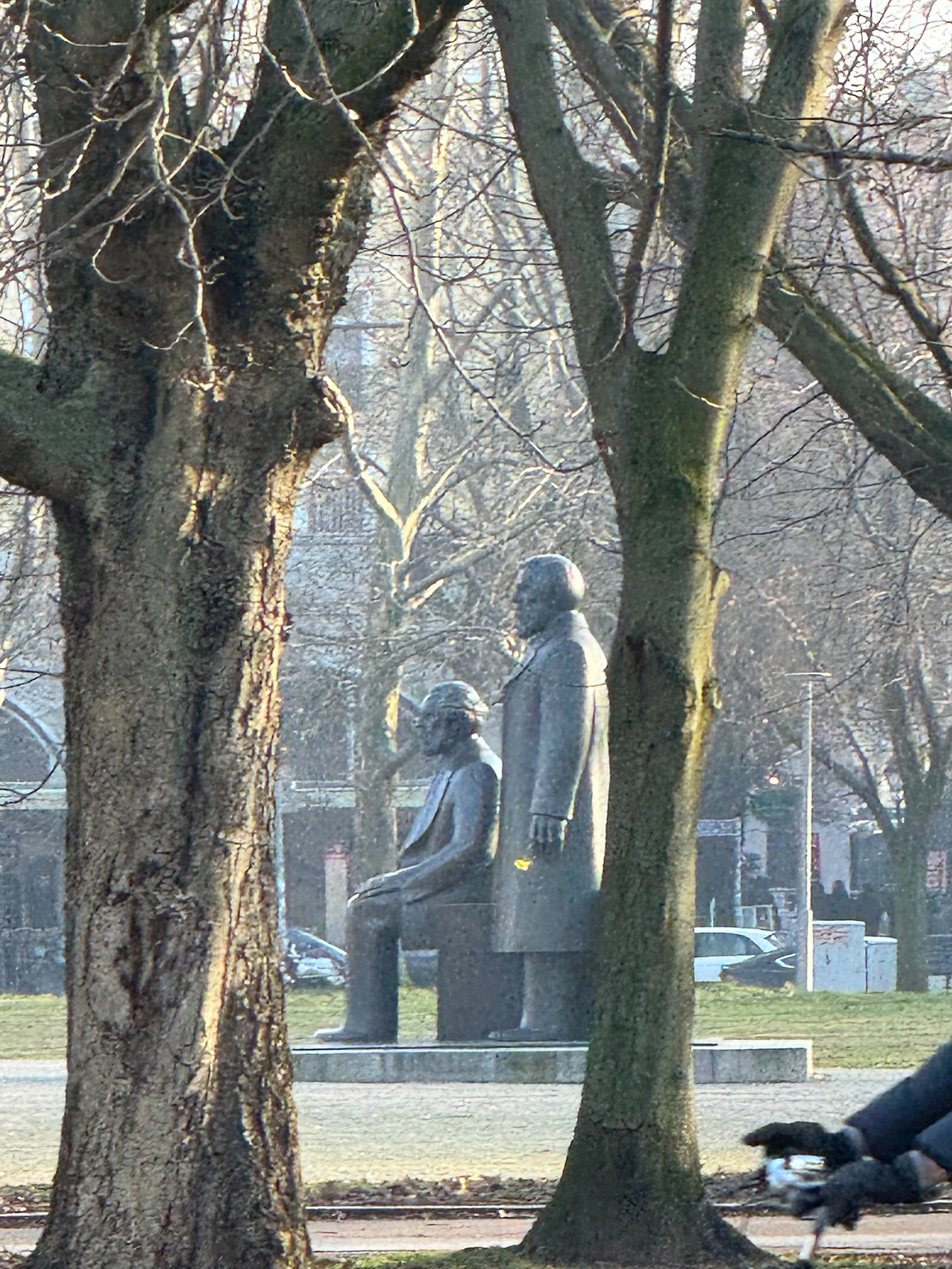 토요일 오후. 금요일과 베를린시내에 정말 많은 관광객과 시민들의 이동이 있음에도 시내 공원에 있는 마르트스와 엥겔스 동상 앞에는 방문객이 별로 없었다.