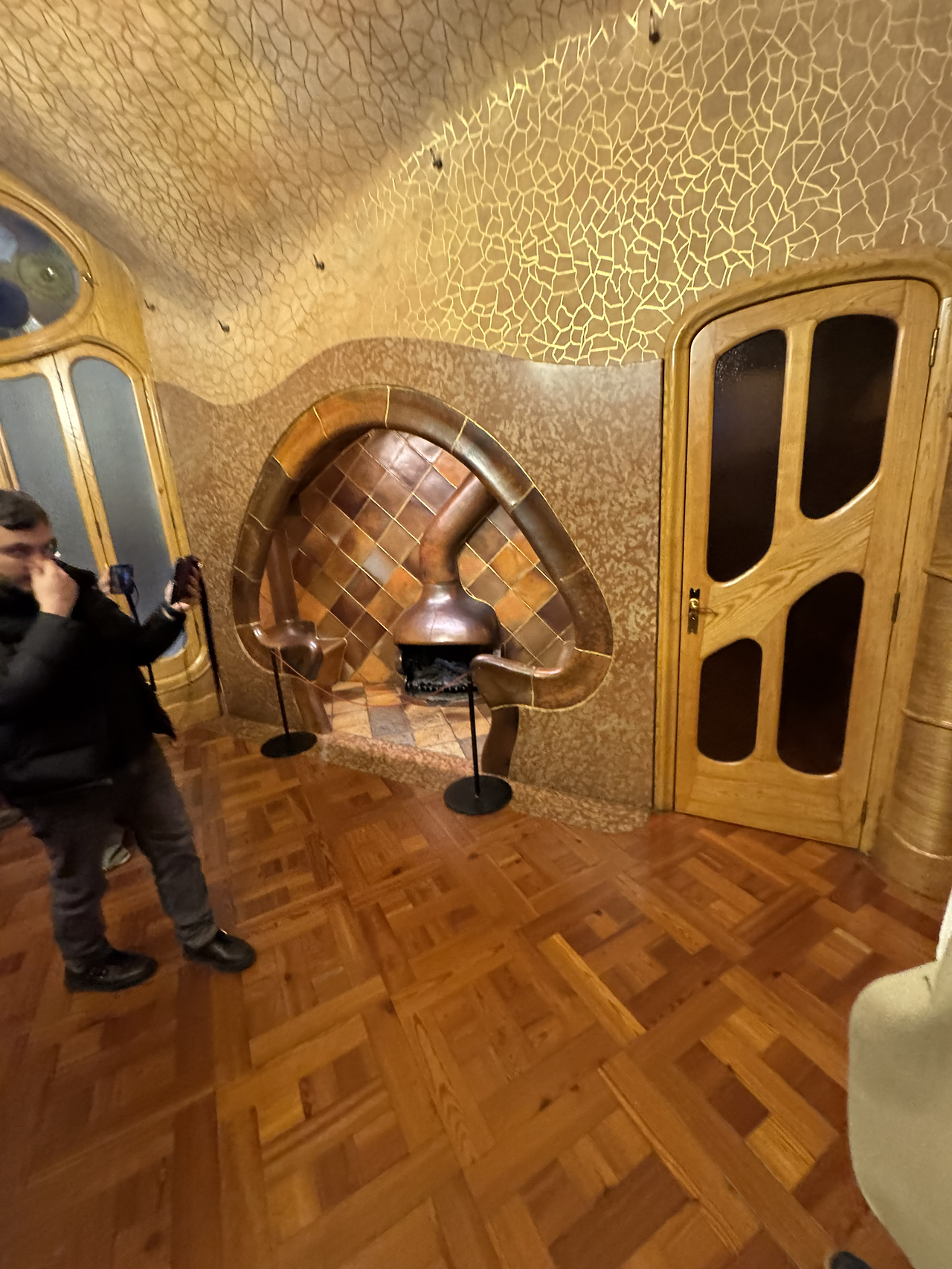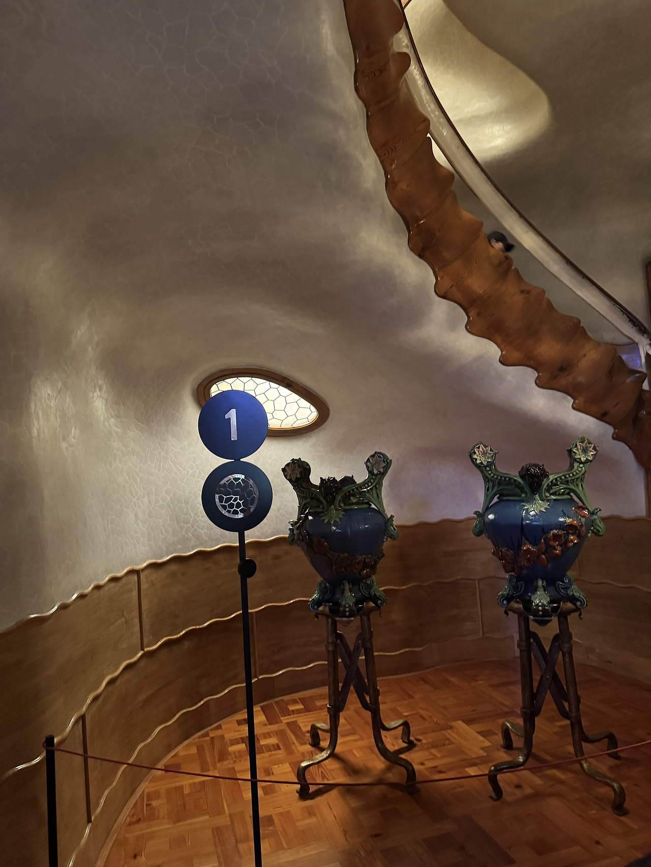 외관에서 느낌은 “그저 그렇구나”, “머지?” 하지만 내부로 들어서는 순간부터 느껴지는 곡선의 아름다움.. 가구. 벽. 천정. 문. 창문. 계단. 그 외 각종 장식 오브제 등 집 자체가 곡선이 주는 찬란한 아름다움 그 자체랄까? 유네스코 문화유산이라니 지극 당연하다 싶었다. 한 장소에서 이렇게 많은 사진을 찍은 기억이 없다. ㅎㅎㅎ