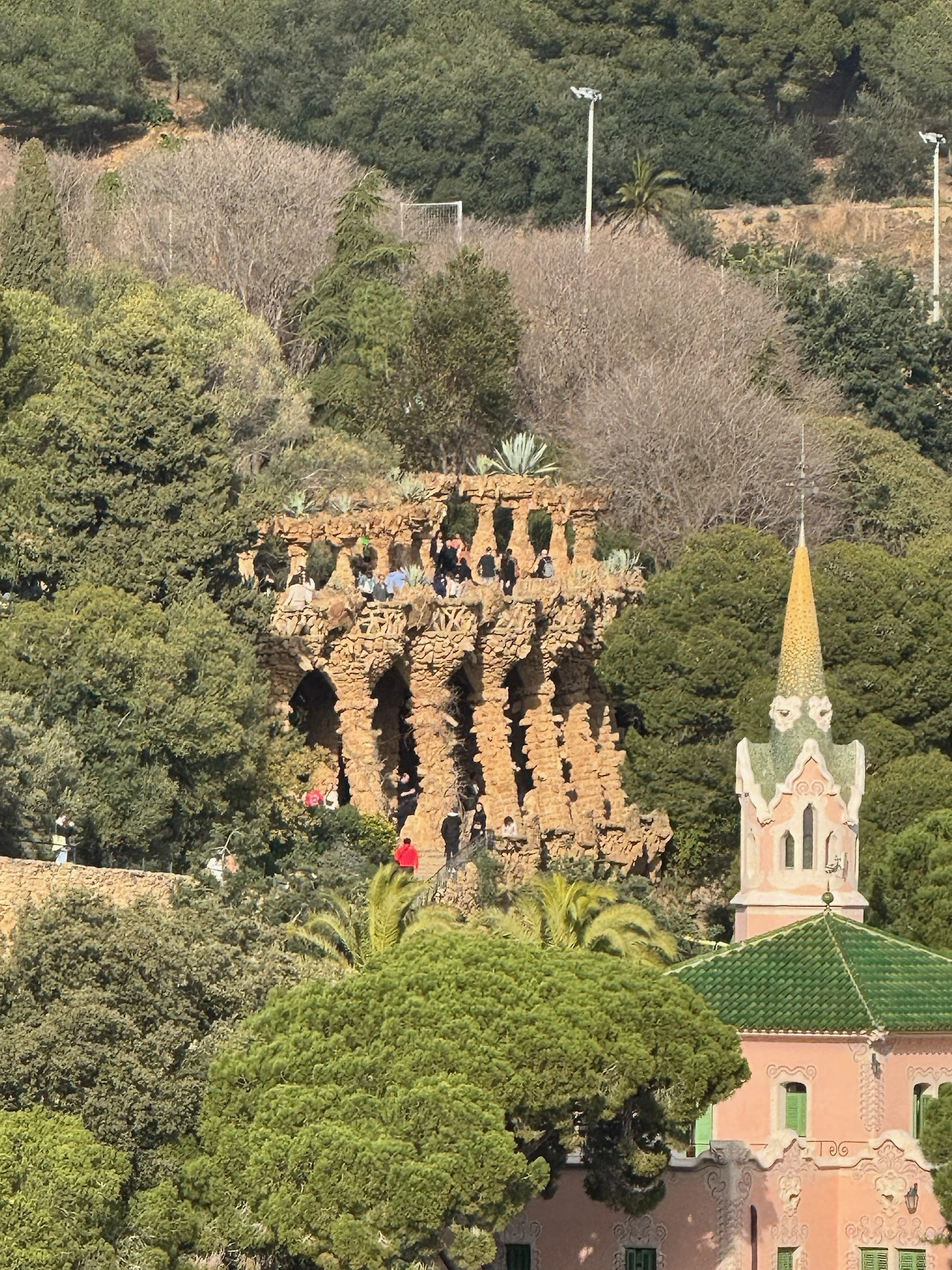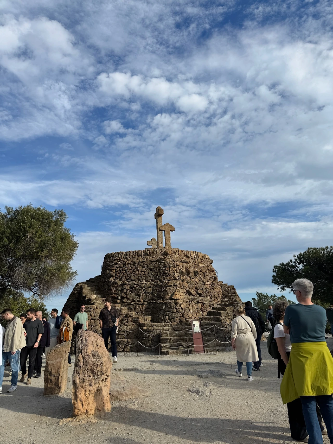 넓게 펼쳐진 산자락이라는 공간 속에 각종 건축물들과 조형들이 어울려져 있는, 바르셀로나시의 전경과 멀리 지중해가 바라다보이는 외딴섬 산 중턱의 휴양지에 와 있는 느낌이랄까.. 어제 파밀리아 대성당에서 느낀 종교적 신성함과는 너무도 대조적으로 자연적이었다. 문외한의 눈에 보인 조경 역시 사람의 손이 간 듯 안 간 듯…