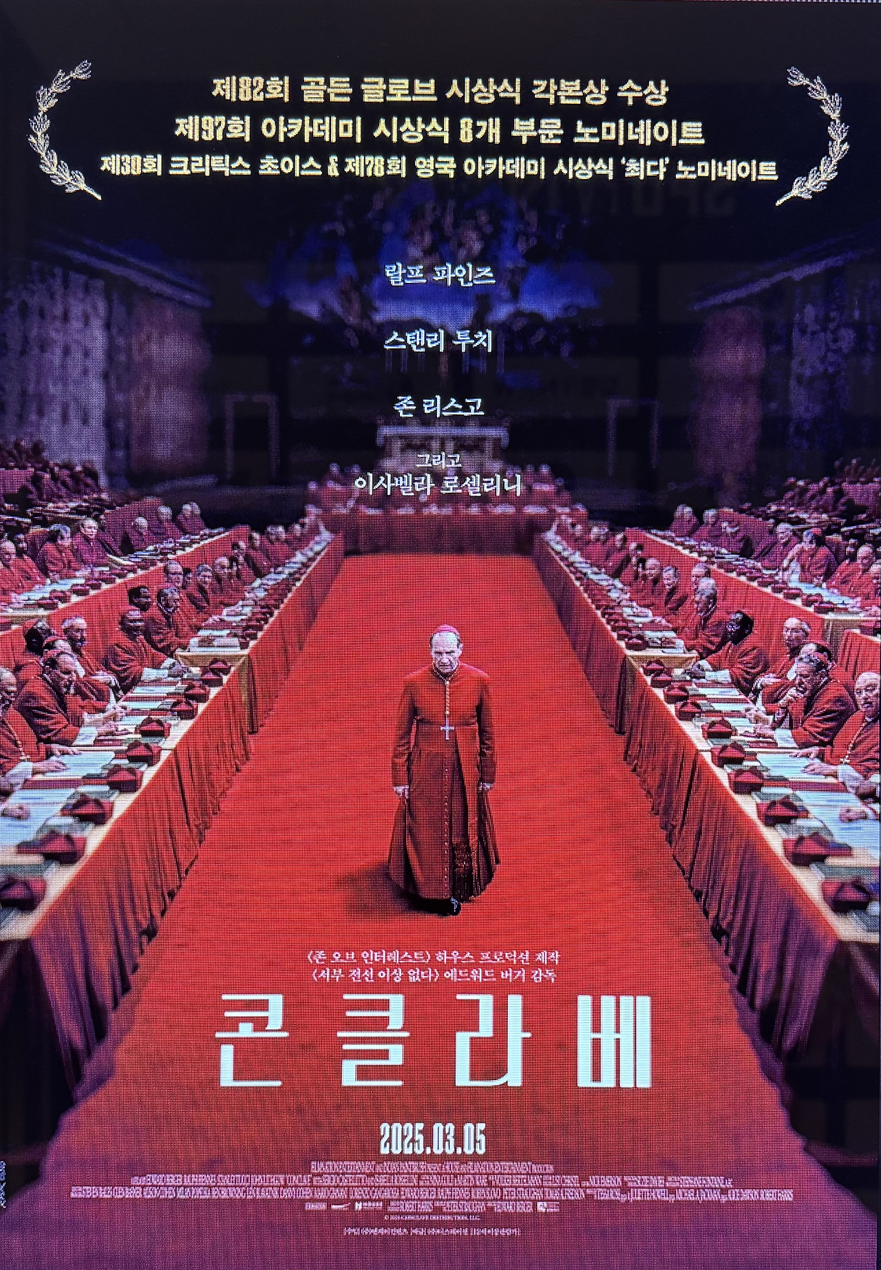 관객인 나에겐 그 과정이 단순히 시스티나 성당내부에서 벌어지는 교황의 선출과정으로만 보이지는 않았다. 사회적인 인간이 모여있는 공동체에서 벌어지는 숨길 수 없는 속성을, 아마도 감독은 “신성한” 콘클라베라는 프로세스를 통해 “과감한” 비유로 표현하고 있다고 느껴진다.
