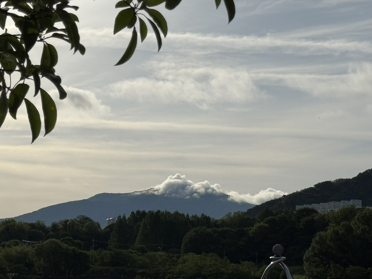 이른 아침 산책하며 바라본 무등산. 제법 거리가 먼 곳인데도 가깝게 보인다.