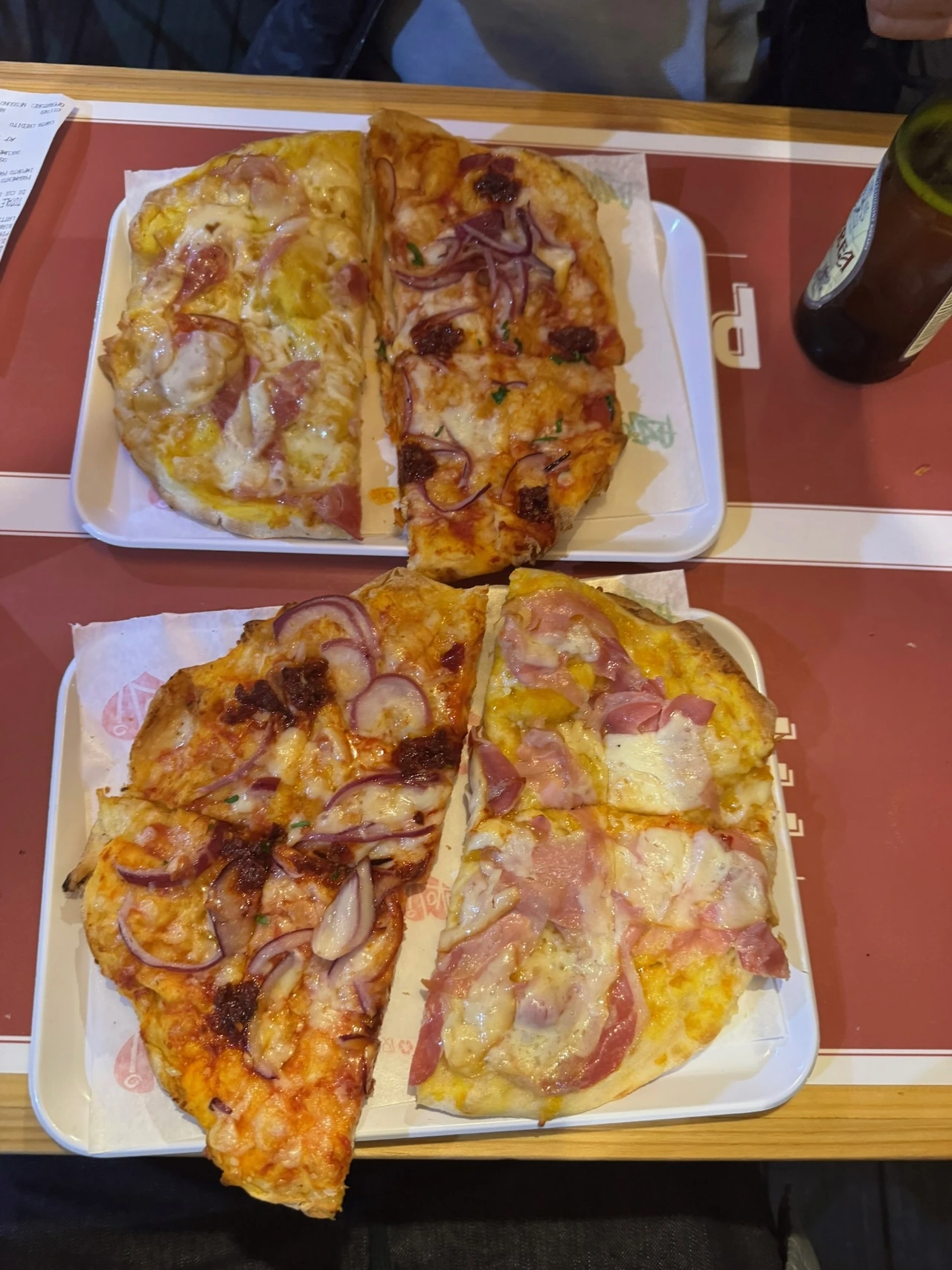 숙소로 이동하는 50분 동안 택시 안에서 바라본 로마의 야경은 영화 속에서 보는 그런 느낌이다. 건물들 자체가 예술품처럼 보였고, 오랜 역사의 도시가 가져다주는 시간의 무게감에 탄성이 절로 나왔다. 숙소에 짐을 풀고 현지식 도전을 위해 미리 검색해 둔 핀세례 식당(Via Flavia, 98, 00187 Roma RM, 이탈리아, 구글별점 4.7)에서 베이컨과 어니언스파이스 피자로 현지식 저녁 식사를 했다. 여행 중 방문하는 도시에서 한 끼 이상은 현지식을 먹어보기로 했다. 먹는 즐거움도 여행의 멋이니까….