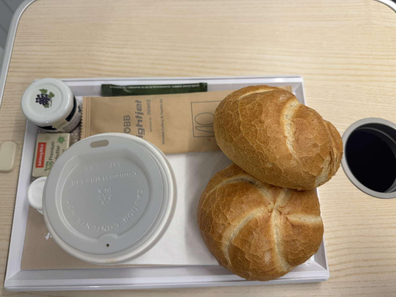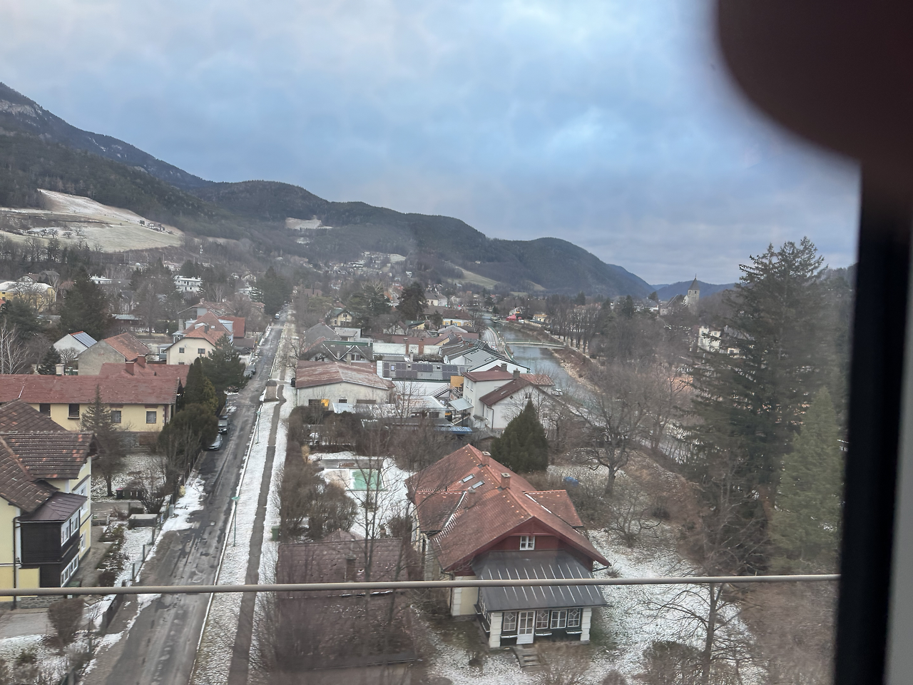 빈에 가까워질수록 기온은 내려간다. 오늘 아침 최저 체감온도가 영하 9도. 한국과 비슷하다. 활엽수는 낙엽을 모두 떨구었고 침엽수기 무성한 산들이 멋지다. 눈이 많은 지역인가 보다. 지붕 경사가 가파르다. 기차에서 제공되는 빵과 커피가 나름 운치 있는 아침식사다.