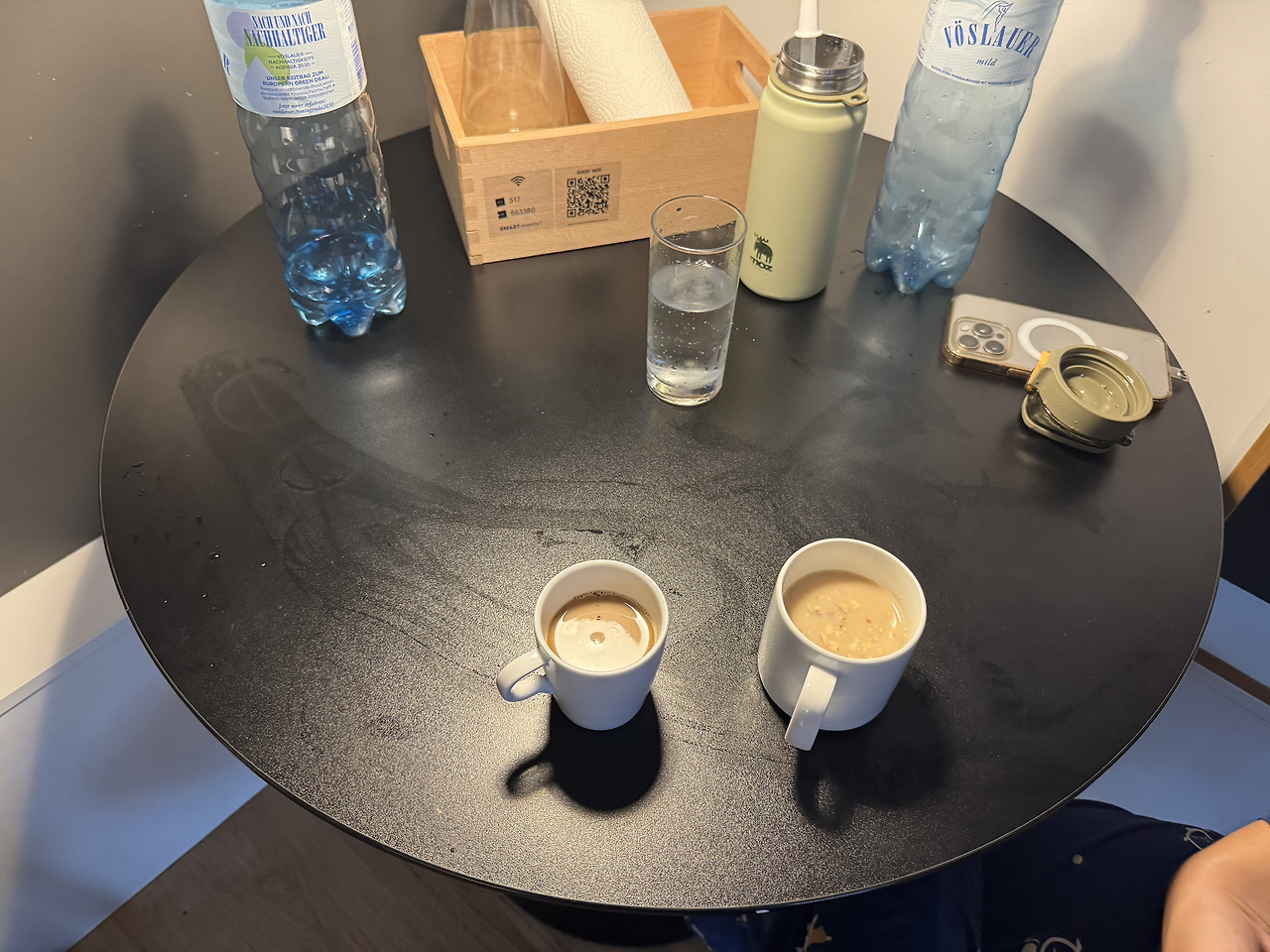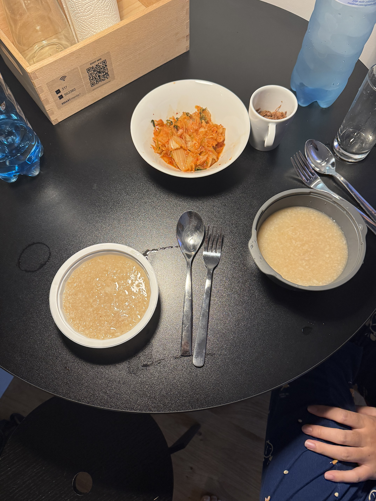 인덕션과 전자렌즈. 간단한 요리가 가능하다. 기쁘다. 한국에서부터 배낭 속에서 내 어깨와 두발에 무게를 더했던 누룽지, 컵라면, 햇반이 이제 즐거움을 주는 순간이다. 저녁은 숙소 room에서 숙소 앞 편의점에서 구입한 김치와 함께.. 꿀맛이다